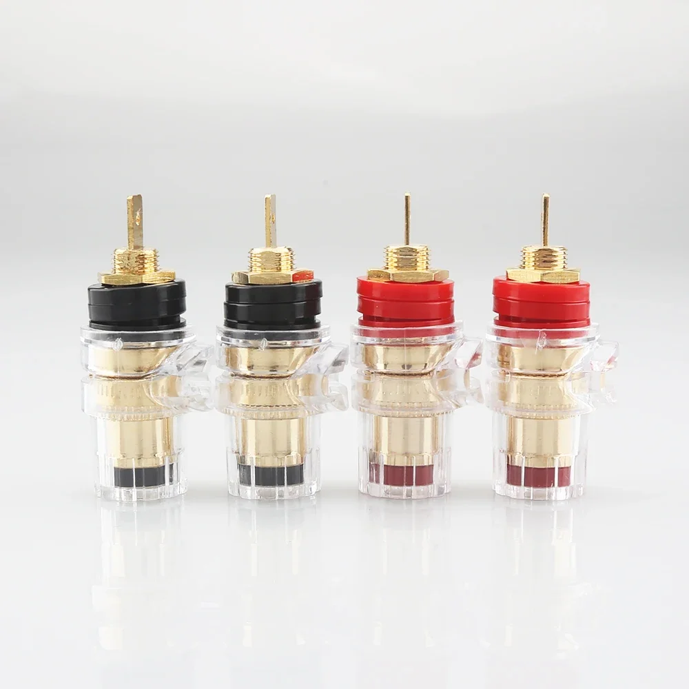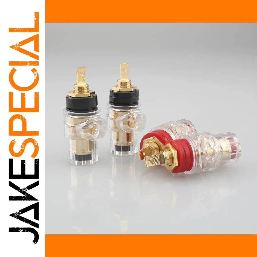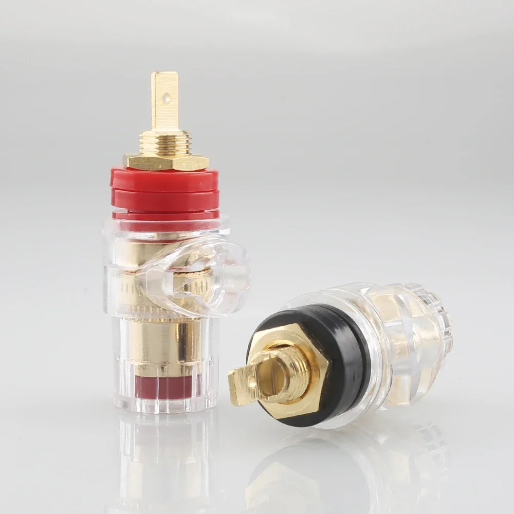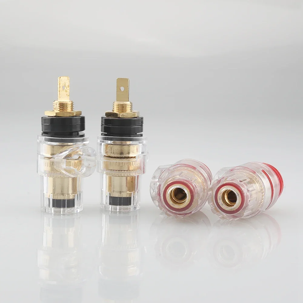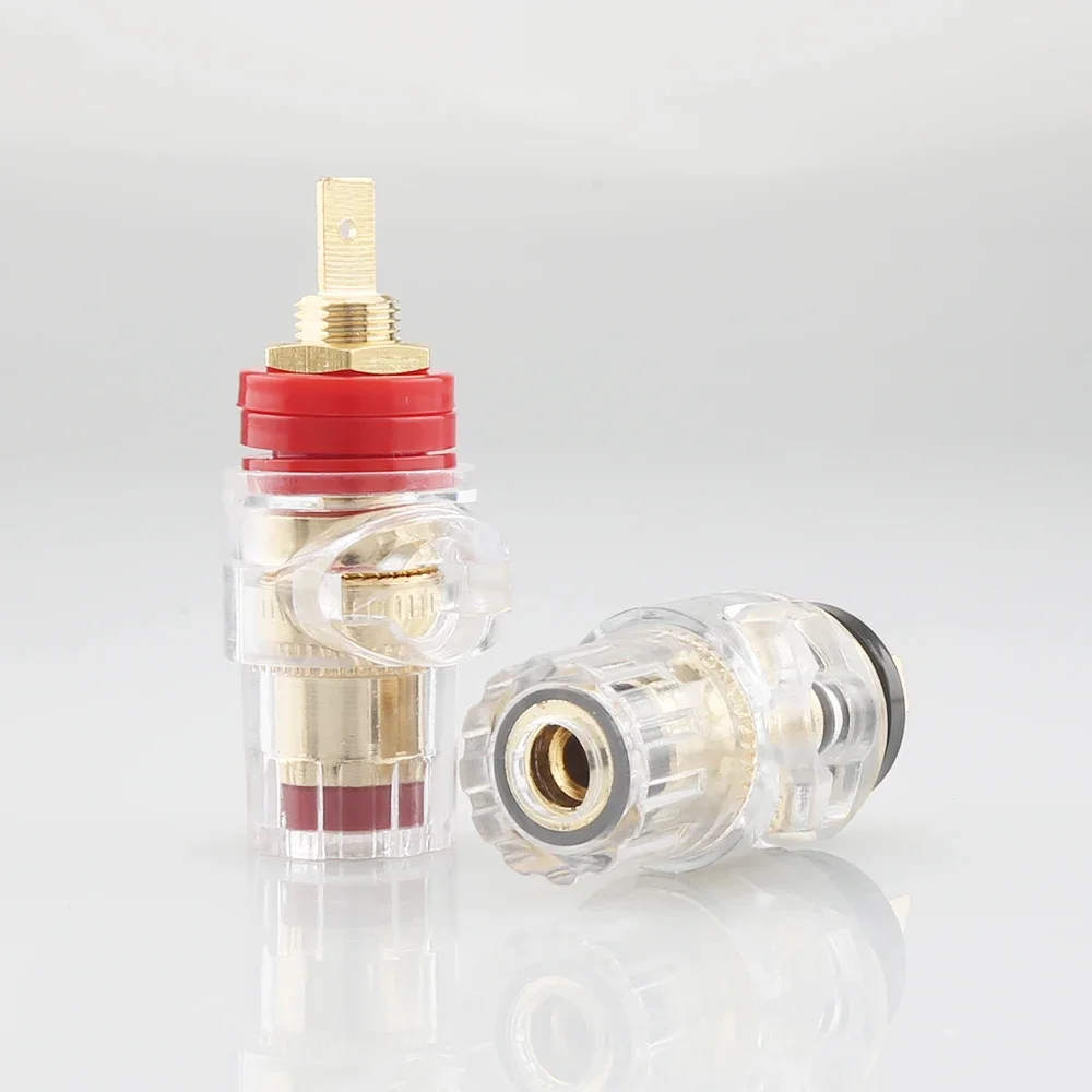 Imagine upgrading your audio setup with this set of four premium binding posts, designed to deliver impeccable sound quality and durability. Crafted for audiophiles who demand the best, these connectors feature sleek gold-plated brass components that ensure maximum conductivity and corrosion resistance. The transparent plastic casing offers a modern aesthetic while revealing internal metal parts, emphasizing precision and craftsmanship. The red and black color coding provides easy polarity identification, making installation straightforward and dependable. Whether connecting speakers or amplifiers, these female hybrid connectors give you a secure, stable connection that enhances overall audio performance. Elevate your listening experience with these reliable, high-end binding posts.