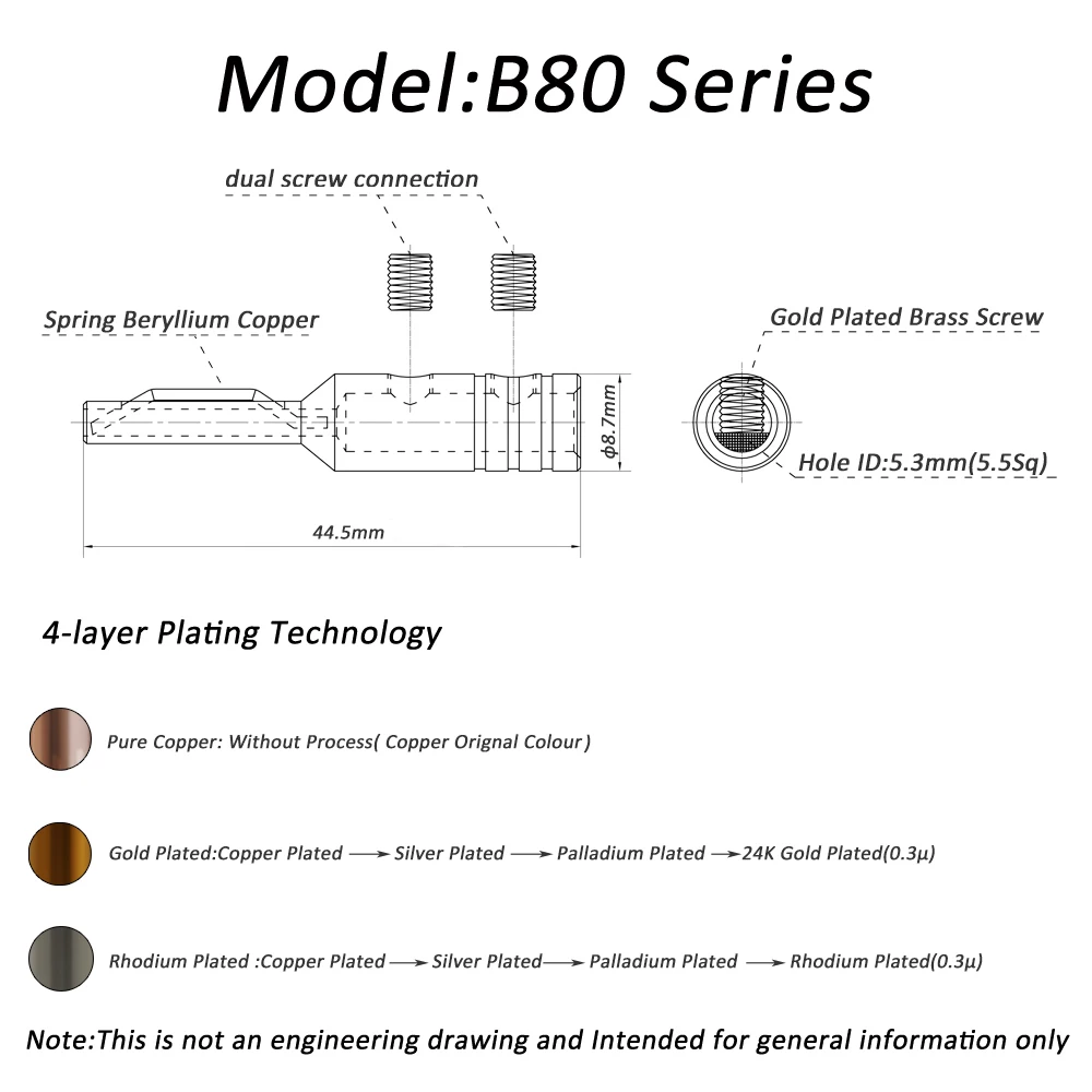 - Available in three variants: B80 (silver, gold, rhodium plated), B80G (silver, gold, platinum plated), and B80R (silver, gold, rhodium plated), catering to different aesthetic and corrosion resistance preferences.