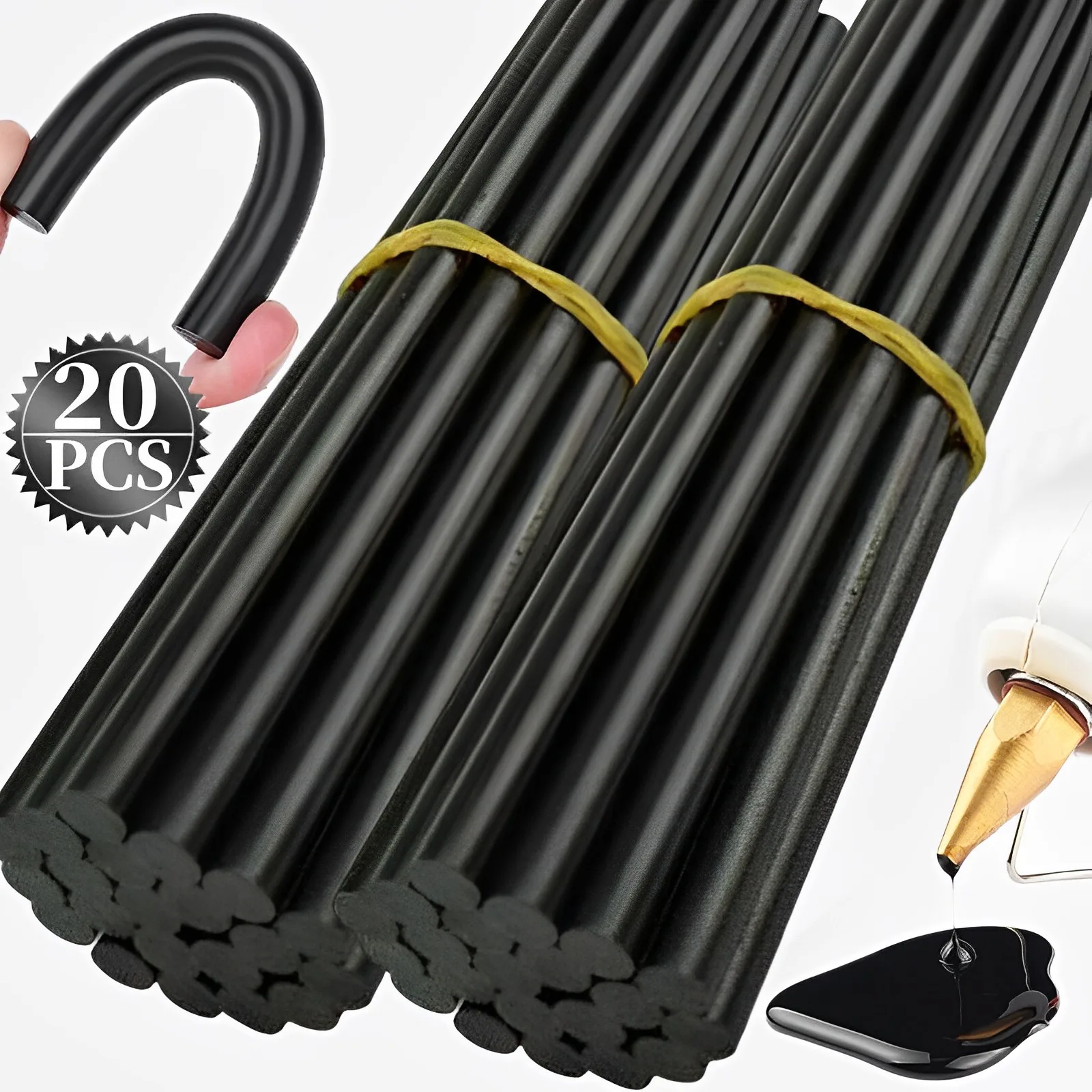 - These black hot-melt glue sticks are made from EVA copolymer with a diameter of 7mm, length options of 100mm, 150mm, 190mm, and a 11mm diameter for versatile usage.