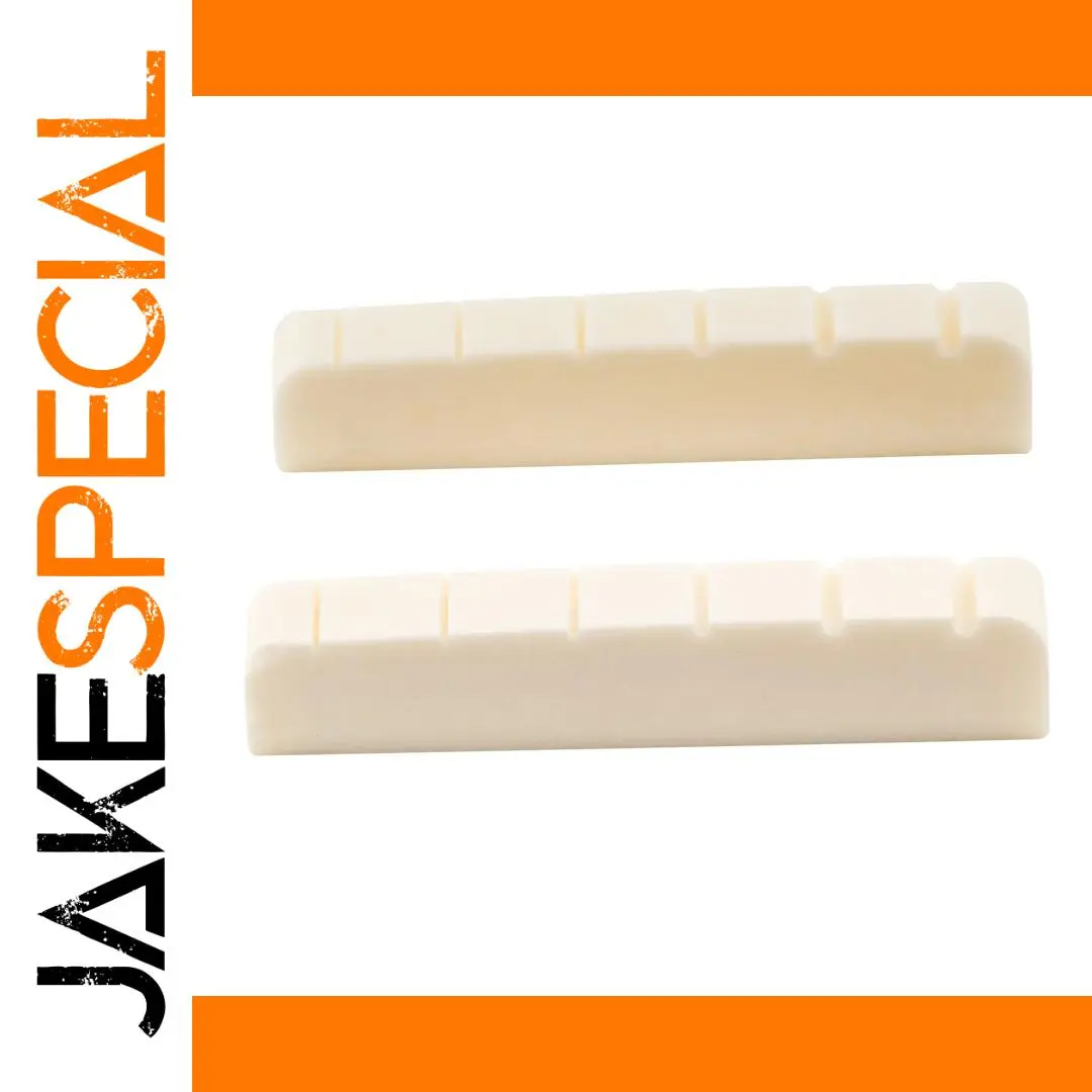 Enhance your electric guitar’s performance with this set of two high-quality bone nuts, crafted from bleached white real bone. Available in three precise specifications—flat bottom 43mm with 34.5mm string spacing and 14-inch radius, flat bottom 42mm with 33.5mm spacing and 12-inch radius, and curved bottom 43mm with 35mm spacing and 7.25-inch radius—each nut features meticulously machined string slots for optimal spacing and string height. With their smooth, polished finish and refined aesthetic, these durable, precisely crafted nuts are perfect for upgrades or maintenance, ensuring your guitar maintains excellent tone, tuning stability, and playable comfort.