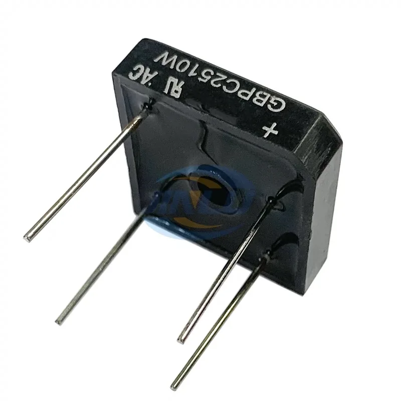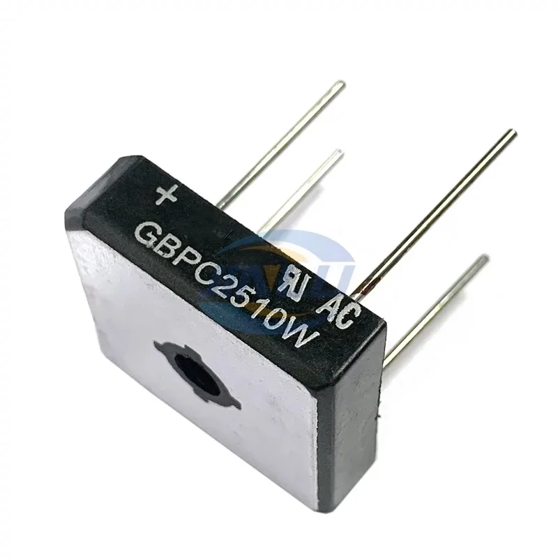 Experience the ease of building robust power conversion circuits with this set of five high-quality bridge rectifiers. Featuring models GBPC3510W, GBPC2510W, and GBPC5010W, these DIP-4 packaged components are designed for durability and reliable electrical performance in inverter and converter applications. The compact black plastic casing with a smooth matte finish not only offers a professional appearance but also ensures lasting durability. The white printed labels provide clear identification with model numbers and symbols, while the four evenly spaced, metallic silver pins facilitate straightforward through-hole mounting. A central circular mounting hole adds to the industrial aesthetic while serving a functional purpose. Incorporate these rectifiers into your projects to ensure efficient, stable power rectification for your electrical systems.