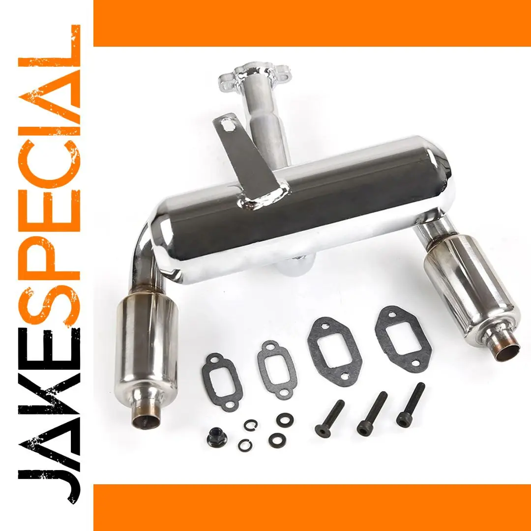 Experience the power and precision of this beautifully crafted CNC metal twin exhaust pipe with muffler, designed specifically for 1/5 scale HPI Rovan Baja 5B, 5T, and 5SC models. Its sleek, polished silver finish not only enhances your vehicle's aesthetic appeal but also showcases its durability and industrial elegance. The smooth cylindrical body with gentle curvature and tapered conical tip offers an aerodynamic look that complements high-performance RC vehicles. Measuring approximately 28 cm long, 12 cm wide, and 23 cm high, this exhaust pipe provides a realistic upgrade for serious hobbyists. Easy to install, it sets your RC vehicle apart with its professional craftsmanship and refined design. Elevate your RC experience with this premium exhaust solution today.