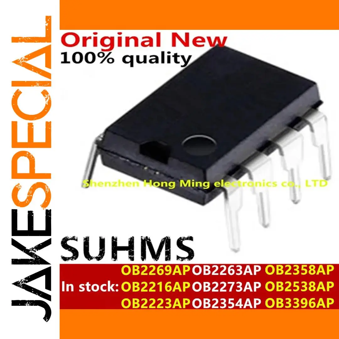 Experience reliable performance with this set of 10 new DIP-8 chipset ICs, including models OB2269AP, OB2216AP, OB2223AP, OB2263AP, OB2273AP, OB2354AP, OB2358AP, OB2538AP, and OB3396AP. Crafted for advanced computer applications, each IC offers a sleek rectangular shape with a matte black plastic body and a subtle circular indentation for easy orientation. The metal pins extend from the sides, blending technical proficiency with a minimalist industrial aesthetic. Designed to meet international standards, these chips provide consistent voltage and power dissipation, ensuring stability and longevity in your hardware. Perfect for upgrading or repairing your electronic devices with precision and confidence.