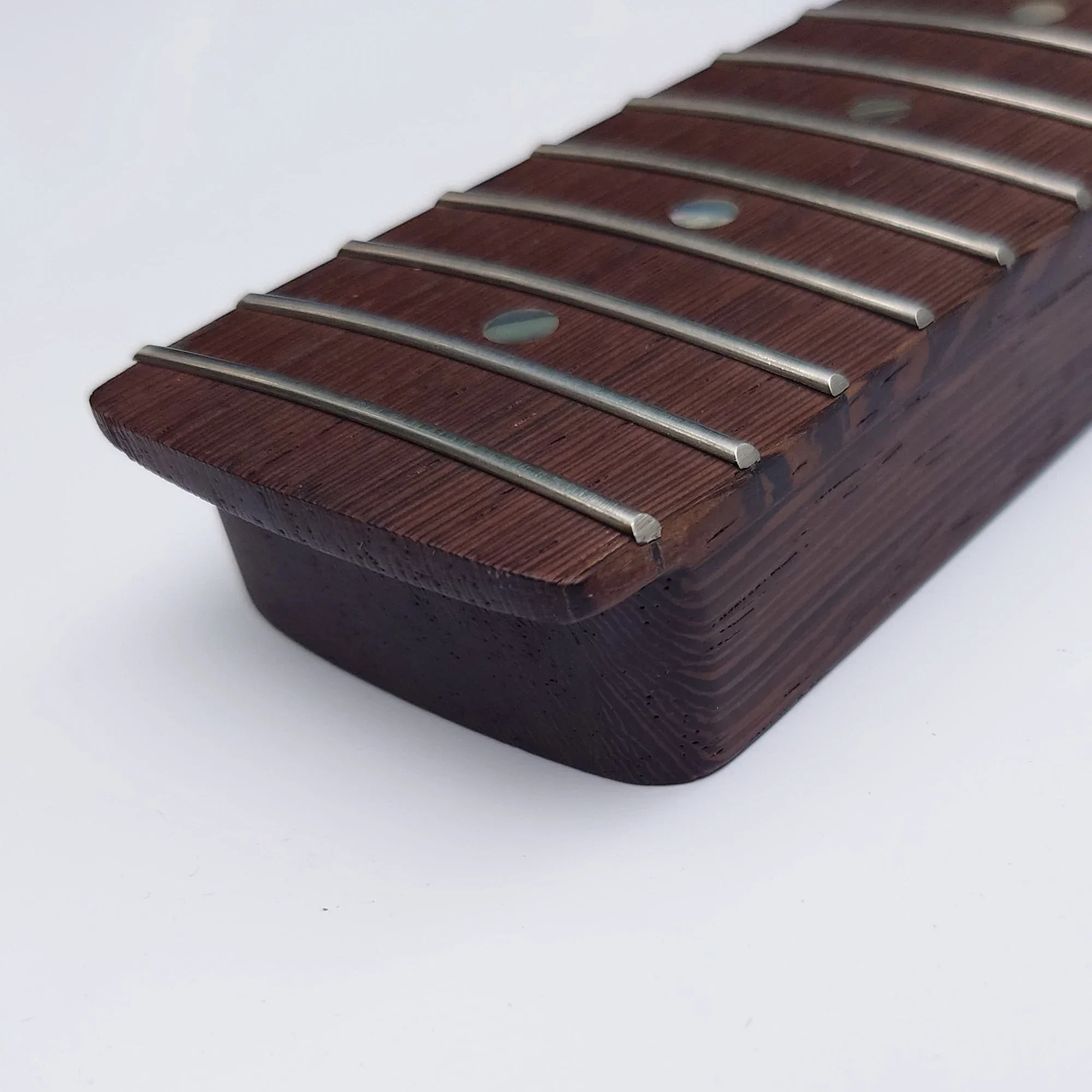 Imagine enhancing your guitar with a neck that combines durability, elegance, and flawless performance. Crafted from premium Chicken Wing Maple, this neck offers a smooth, flat surface that enhances playing comfort and resonance. The dark brown rosewood fingerboard with iridescent mother-of-pearl inlays provides subtle visual accents and excellent tactile response. Its 22 frets promise a wide range for expressive playing, while the integrated construction ensures strength and stability. The 42mm nut width facilitates comfortable finger positioning. An adjustable truss rod at the headstock allows convenient neck adjustments for optimal setup. Lightweight at approximately 700 grams, this neck feels balanced in your hands, inspiring confidence during every performance. Perfect for serious musicians seeking a reliable, high-performance replacement or upgrade.