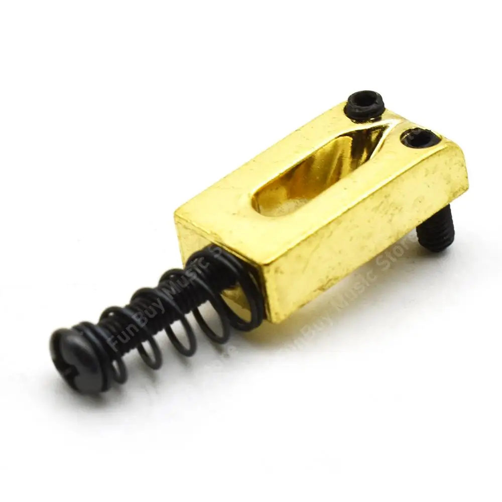 Bring a professional touch to your electric guitar with this set of six high-quality replacement saddles. Crafted from durable metal with a sleek chrome finish, these saddles are designed to optimize your instrument’s performance. Available in black, silver, and gold, each saddle features a smooth, rectangular shape with rounded edges, offering both aesthetic charm and precise functionality. The package includes springs and screws for straightforward installation, ensuring your guitar stays perfectly tuned. Whether upgrading or repairing, these saddles add a touch of elegance while maintaining durability and stability. They are compatible with models that use tremolo or fixed bridges, providing versatile compatibility for electric guitar enthusiasts seeking reliable parts.