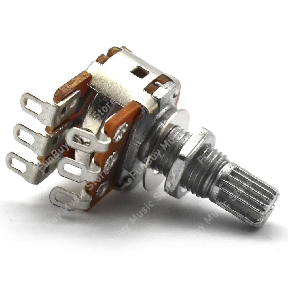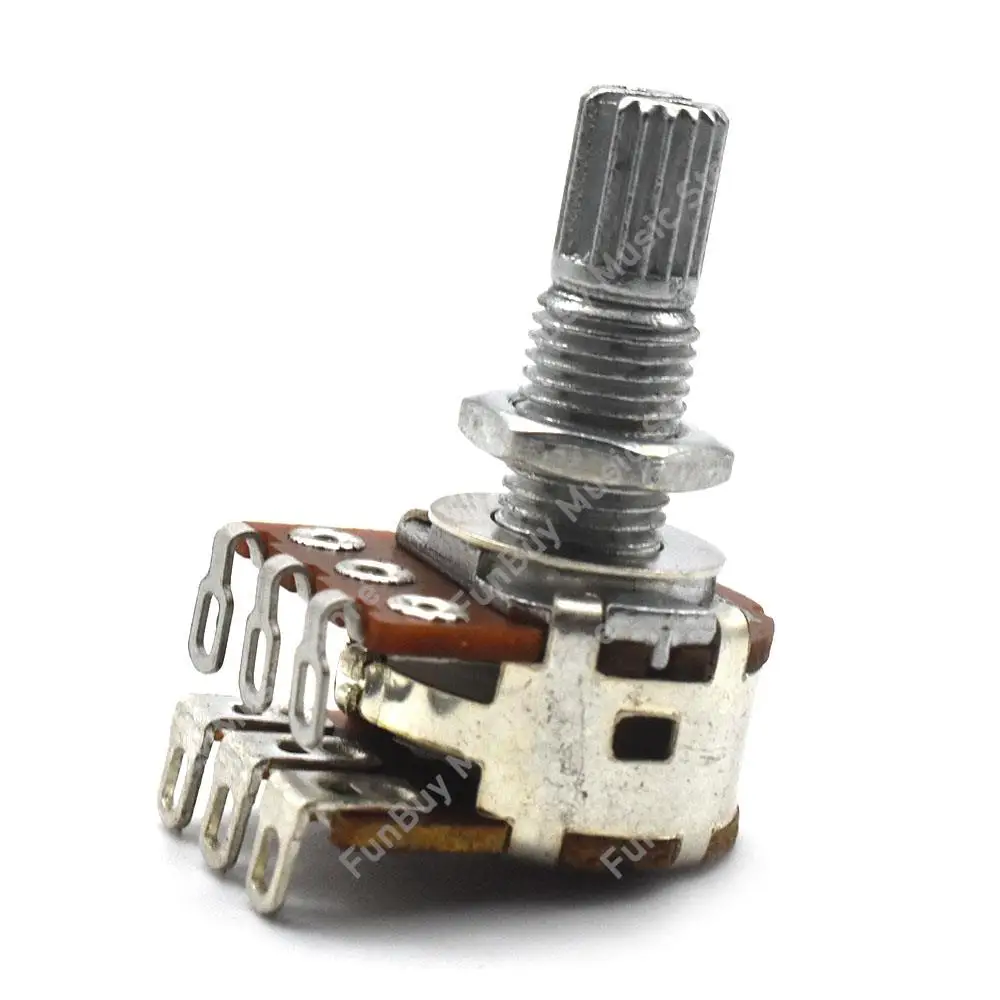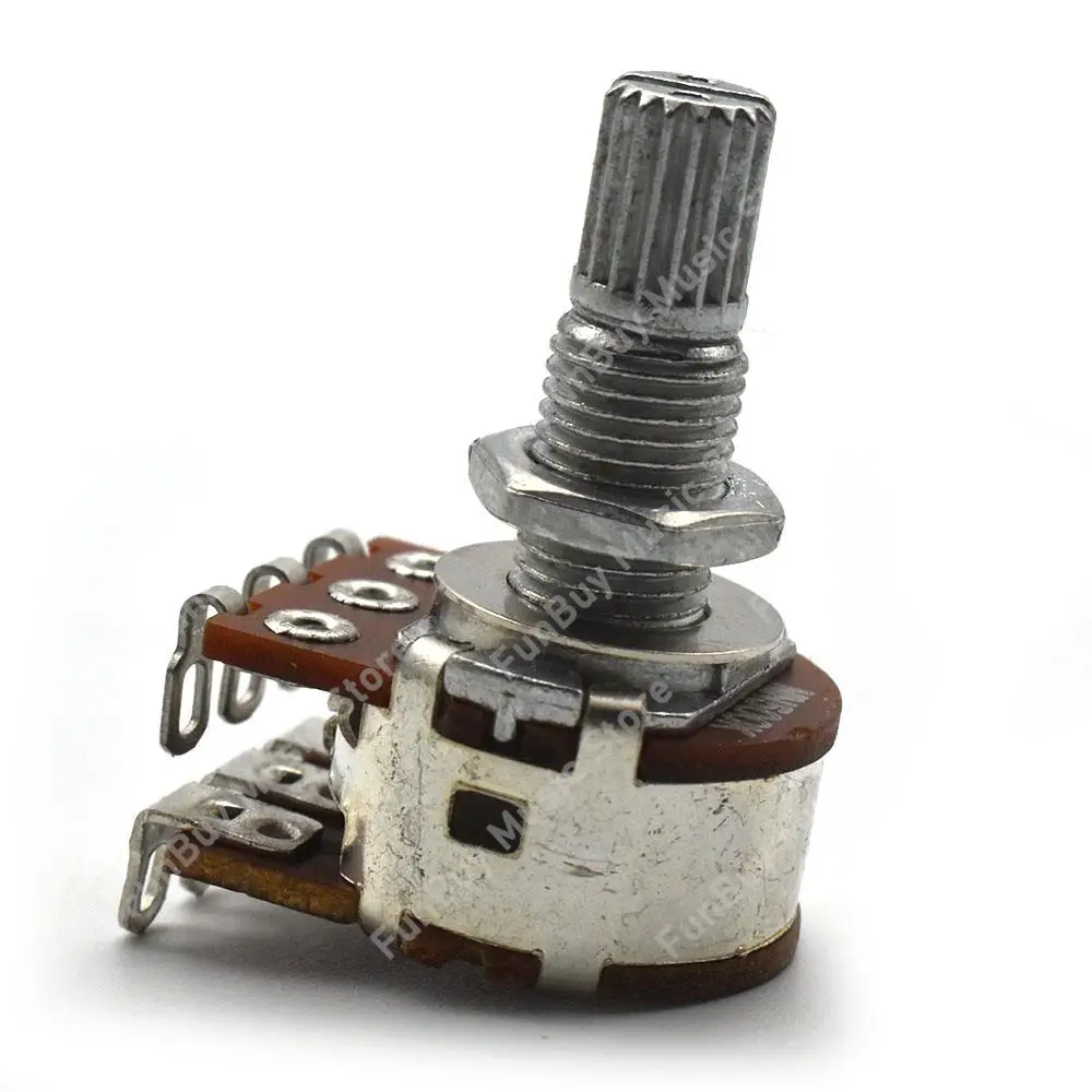 - Technical specifications include resistance values of 250K ohms and 500K ohms, with dimensions matching standard guitar control components and ensuring compatibility with most electric guitar models.