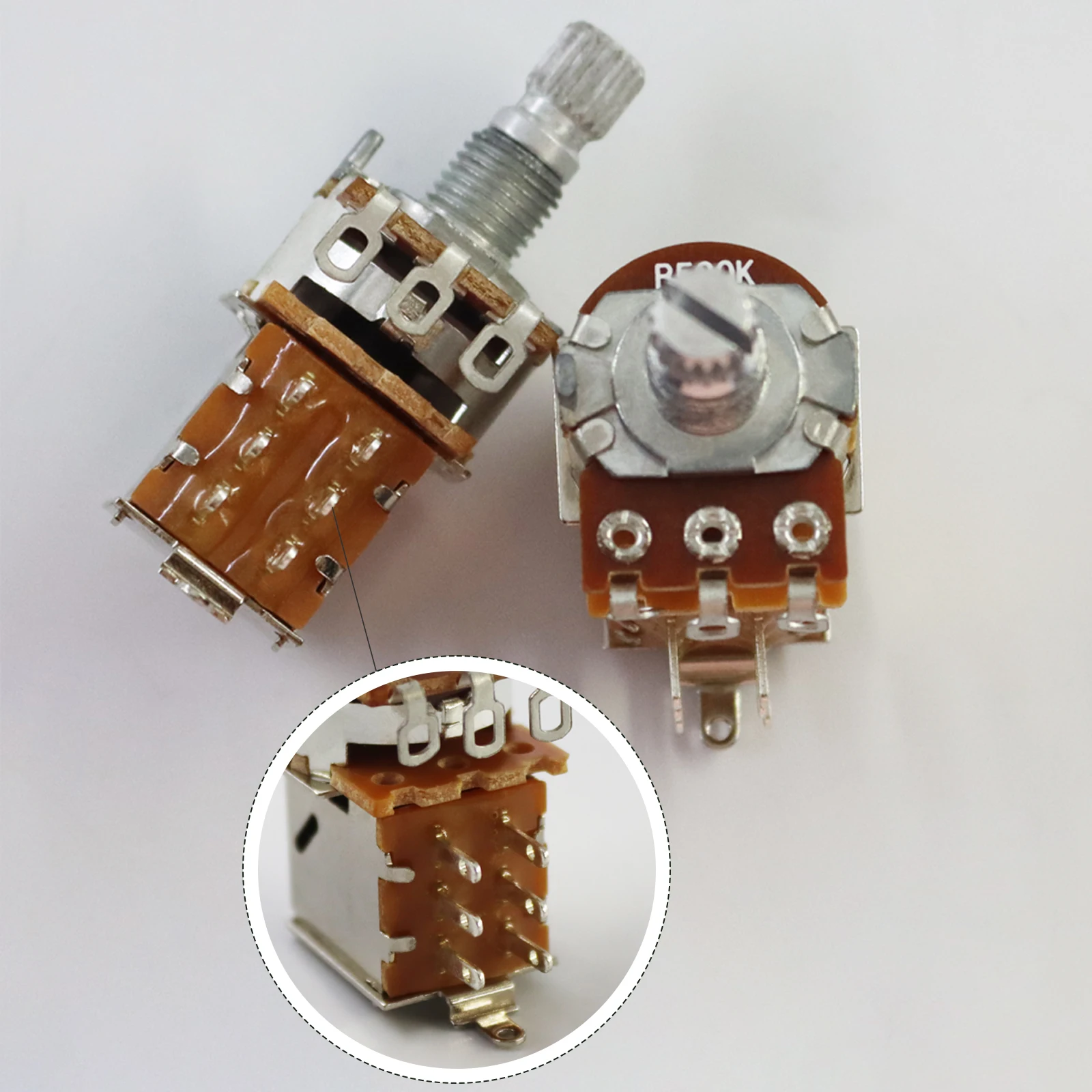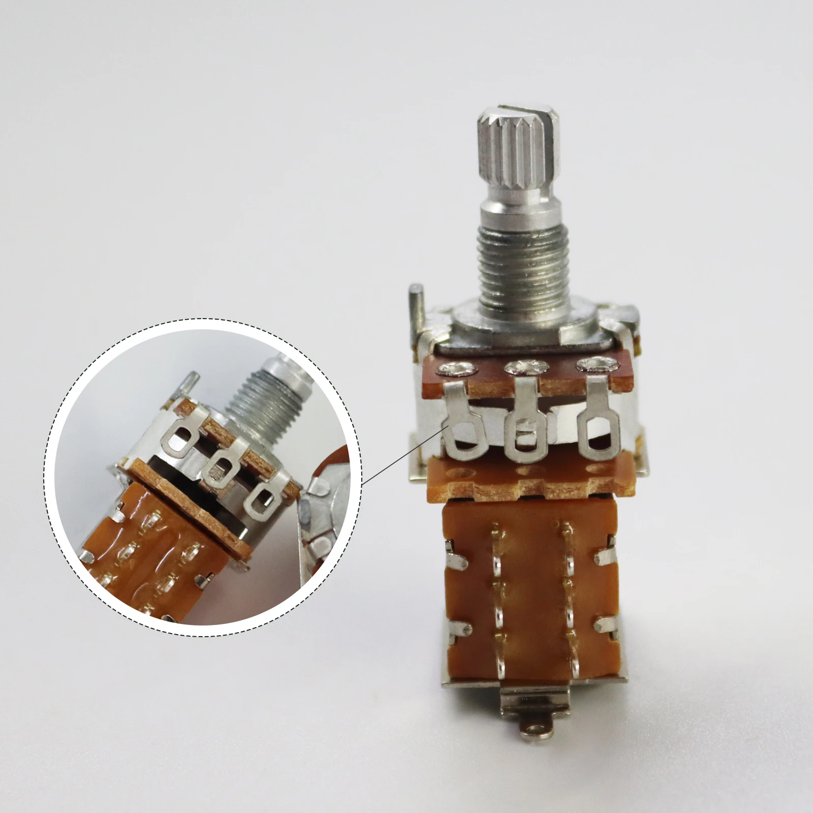 - Choice of resistance options includes A250k, B250k, A500k, and B500k ohms. A Type (audio taper) perfect for volume or tone adjustments, B Type (linear taper) suited for volume control.