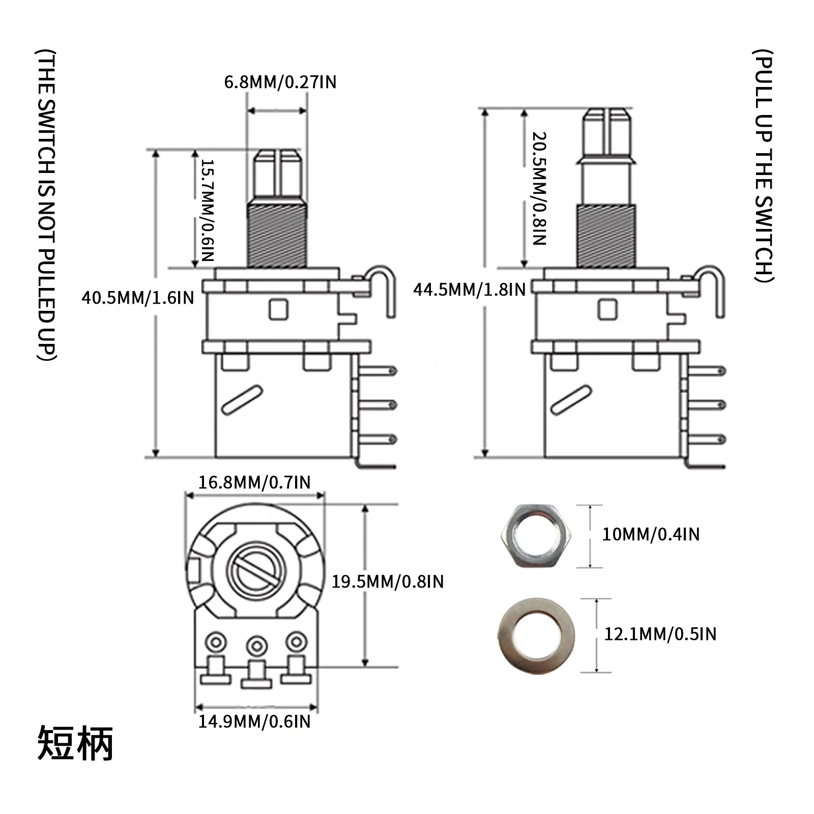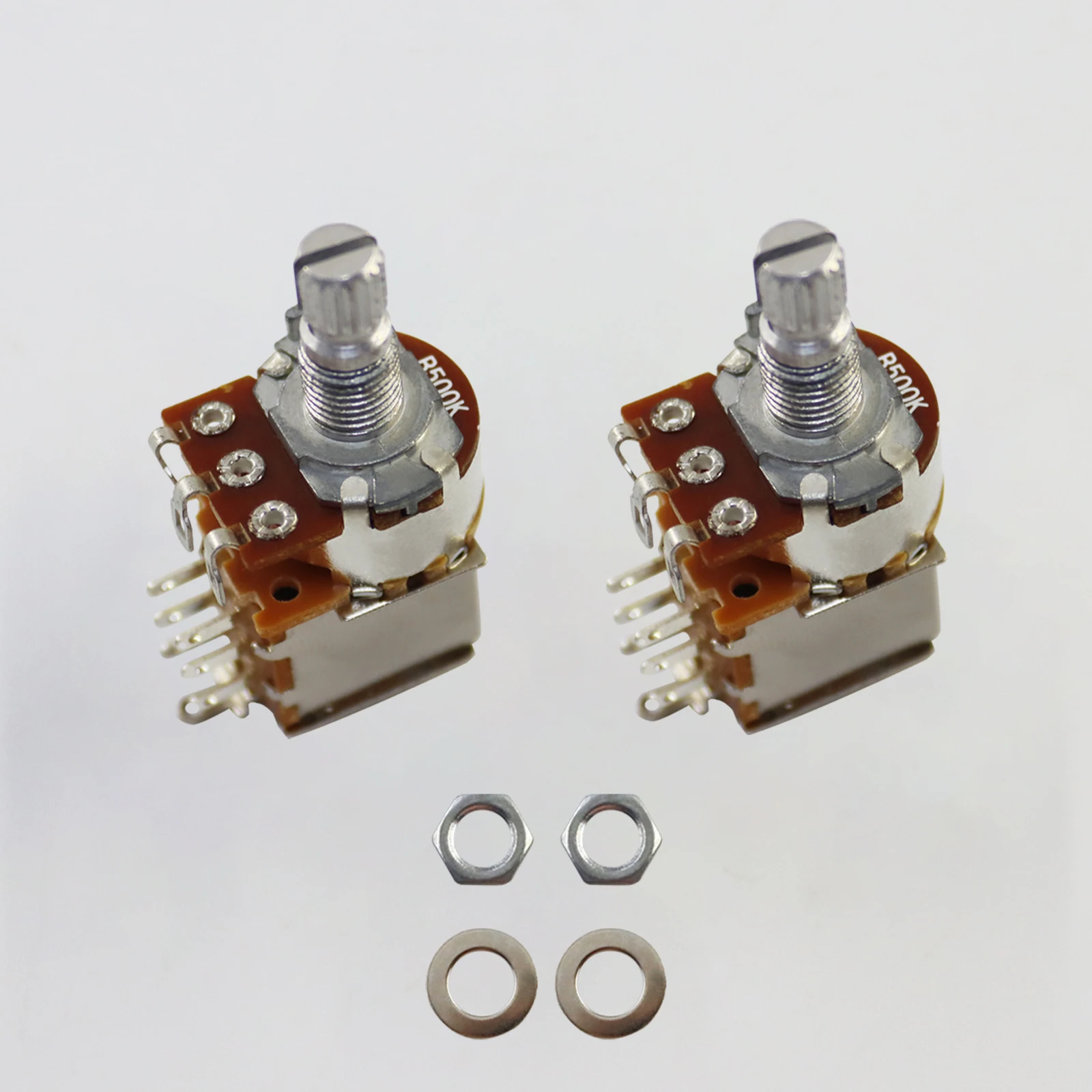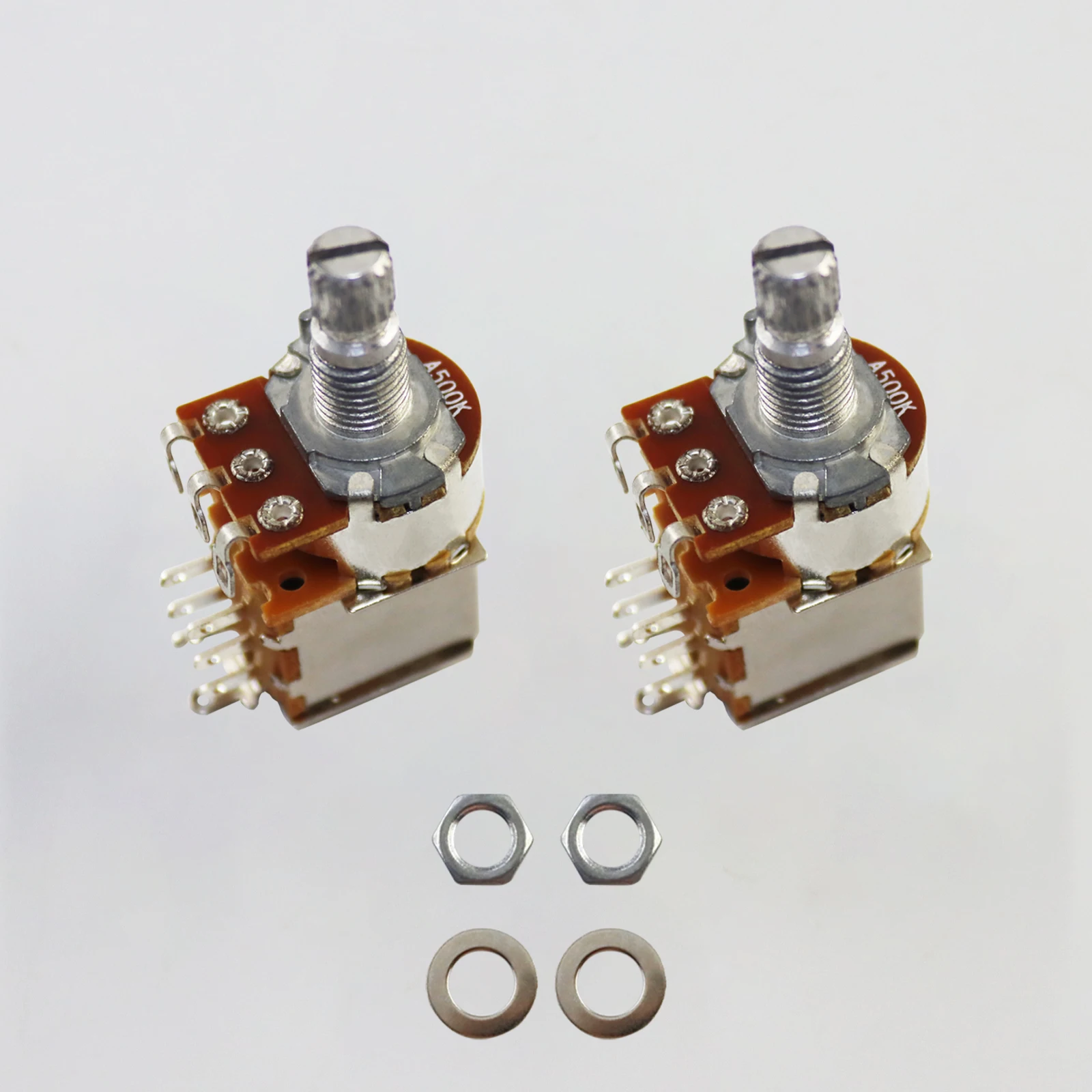 - Comes as a set of 2 potentiometers detailed with short shafts, ideal for guitar or bass upgrade projects. They measure approximately 40mm in total length, fitting most control panels easily.