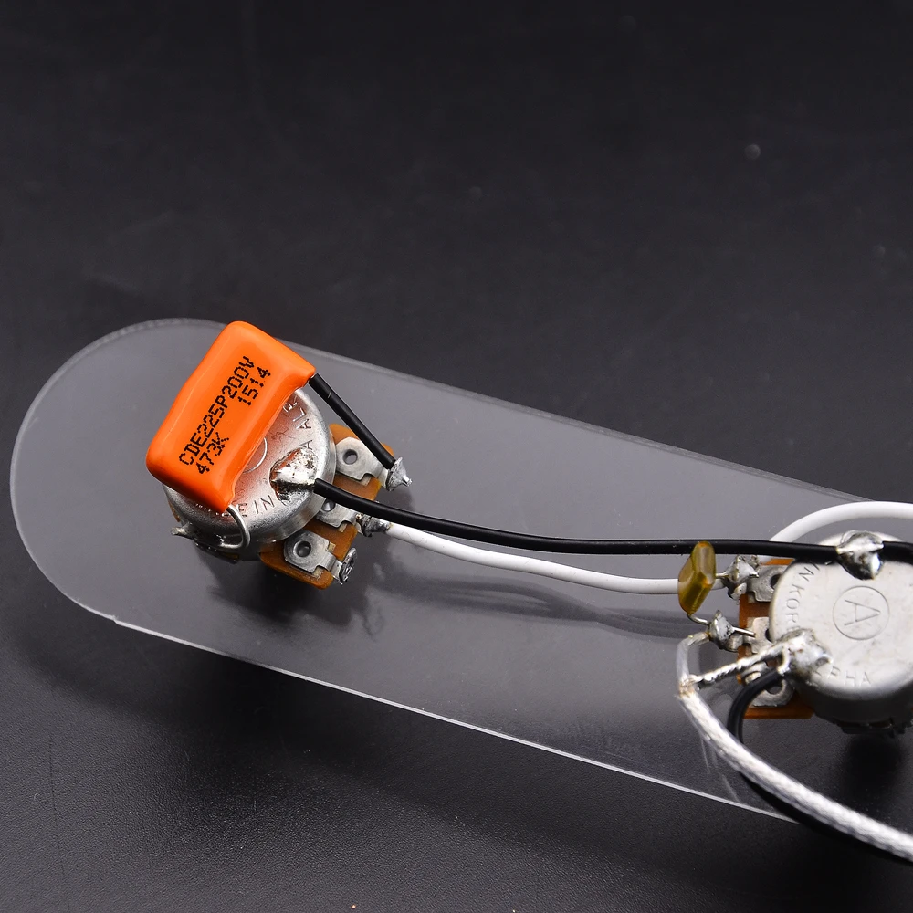 Enhance your guitar’s performance with this premium wiring set, crafted from top-quality materials. Its sleek design combined with reliable components ensures a smooth, professional upgrade. Imagine the satisfaction of playing with perfect sound control and seamless pickup switching—this wiring harness makes that possible. Whether you're replacing an old, worn-out setup or customizing your guitar for the first time, this kit offers a straightforward solution that guarantees long-lasting durability. Take the step toward a better sound today—your guitar will thank you. Enjoy improved tone quality, precise control, and overall better guitar performance with this reliable wiring harness.