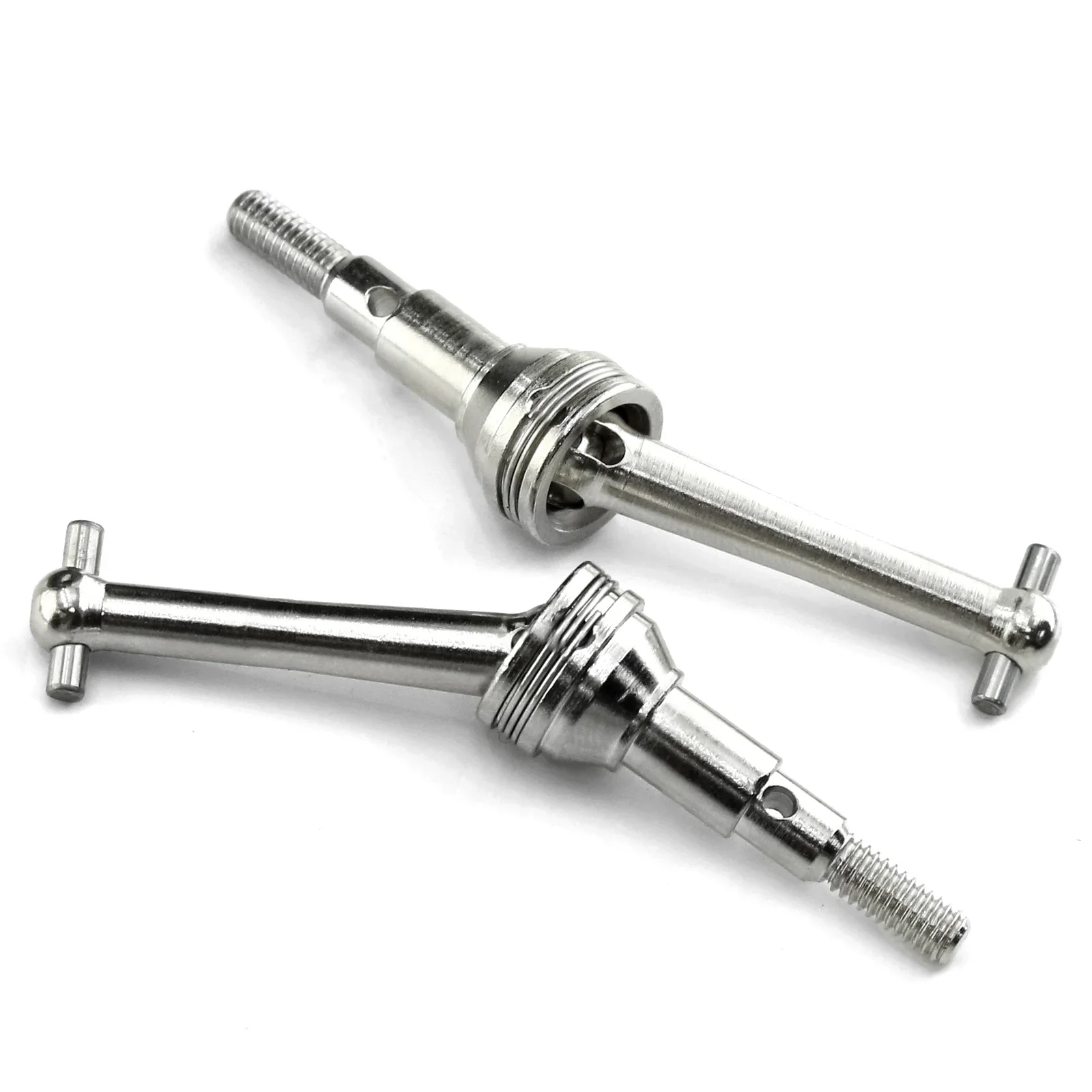 Step into the world of enhanced RC car performance with these durable, high-polished metal drive shafts designed specifically for 1/14 scale MJX models 14301 and 14302. Crafted from premium metal, these shafts feature a sleek, mirror-like finish that not only looks impressive but also ensures increased strength and wear resistance. The precise engineering includes smooth cylindrical tubes with reinforced central sections adorned with concentric grooves, blending form and function seamlessly. The rounded ball joints tapering to tips and finely threaded ends make installation effortless and secure. Imagine upgrading your RC vehicle for better durability and reliability, experiencing smoother rides, and feeling confident with every turn. These shafts are a perfect addition for enthusiasts seeking maximum performance.