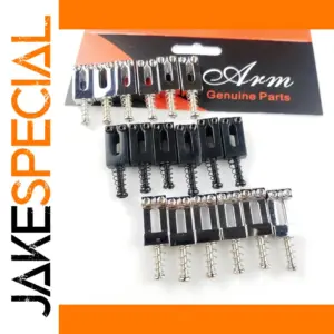 Enhance your electric guitar’s performance with this set of high-quality metal bridge saddles, model 3451, designed for tremolo bridges. Manufactured in Korea, these saddles measure 10.5mm, ensuring precise string height and intonation adjustments. Available in sleek white, vibrant yellow, and bold red, they add a touch of personal style to your instrument. Each saddle features a durable metal construction with a smooth, polished finish, and is equipped with adjustment screws and coil springs for easy tuning and quick setup. Their rectangular shape with rounded edges ensures stability and comfort, making them ideal for guitarists who demand both functionality and aesthetic appeal. Perfect for upgrading or replacing your existing saddles to achieve better tone and sustain.