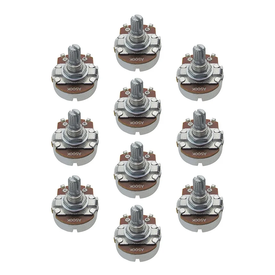 Choosing this set of high-quality guitar potentiometers means investing in reliable, durable components that promise seamless performance and a professional look. Whether you're replacing worn-out controls or upgrading your instrument for better sound control, these potentiometers are designed to meet your needs. With their sturdy metal construction and versatile resistance options, you'll enjoy precise adjustments and a cohesive appearance. Elevate your instrument’s aesthetics and functionality today—you won’t regret the improved control and durability this set offers. Perfect for hobbyists, professionals, and musicians committed to quality.