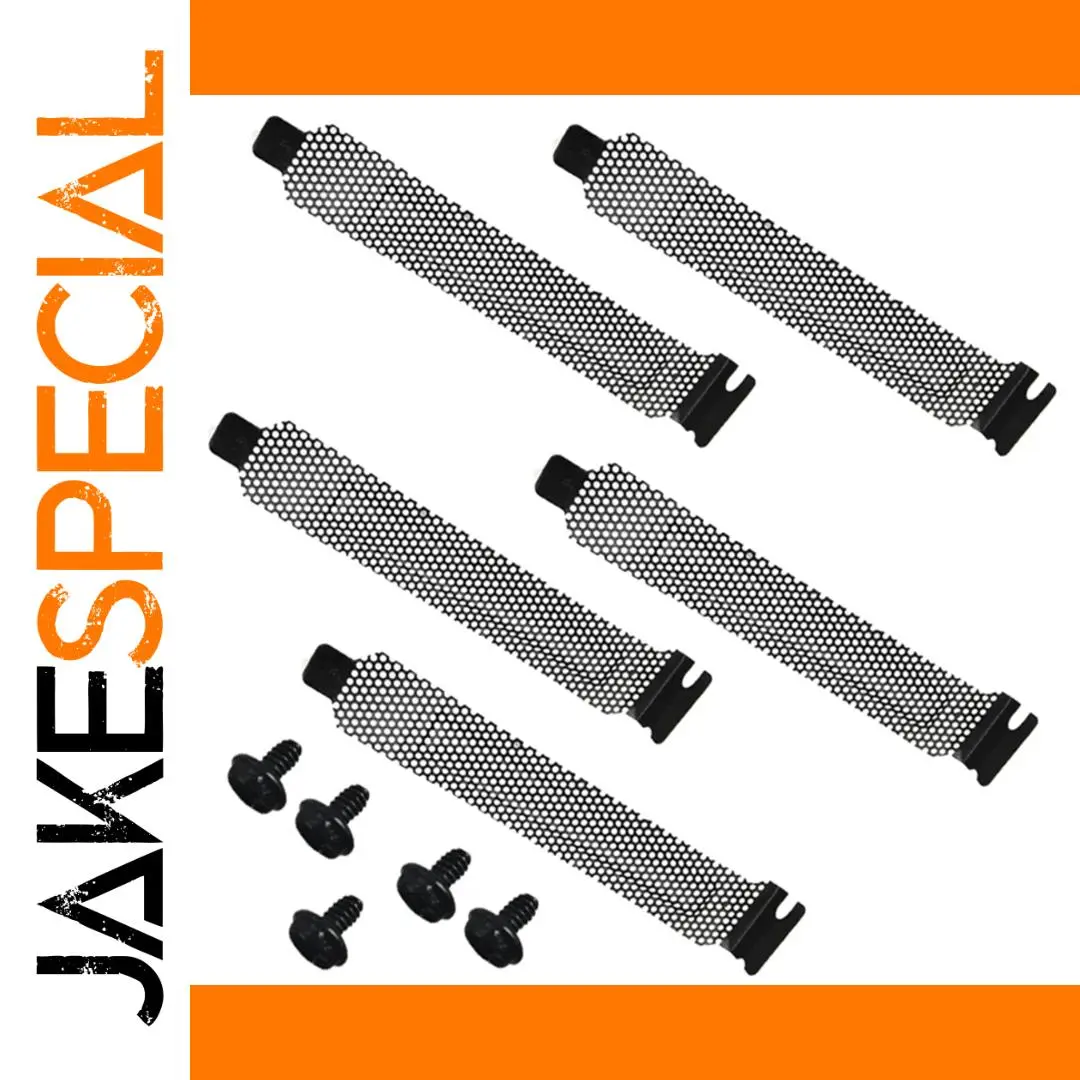 Transform your computer case into a cleaner, more efficient system with this set of five high-quality metal PCI slot cover filters. Designed with a modern, industrial aesthetic, each filter features a honeycomb-patterned mesh that balances airflow and dust prevention. Made from durable metal with a sleek matte finish, these filters provide long-lasting protection against dust while allowing heat to dissipate effectively. The black plastic end caps provide structural support and seamless integration. Easy to install with included screws, these covers are compatible with most full-sized computer cases, helping you protect critical components and maintain optimal cooling. Elevate your PC’s performance and appearance today.