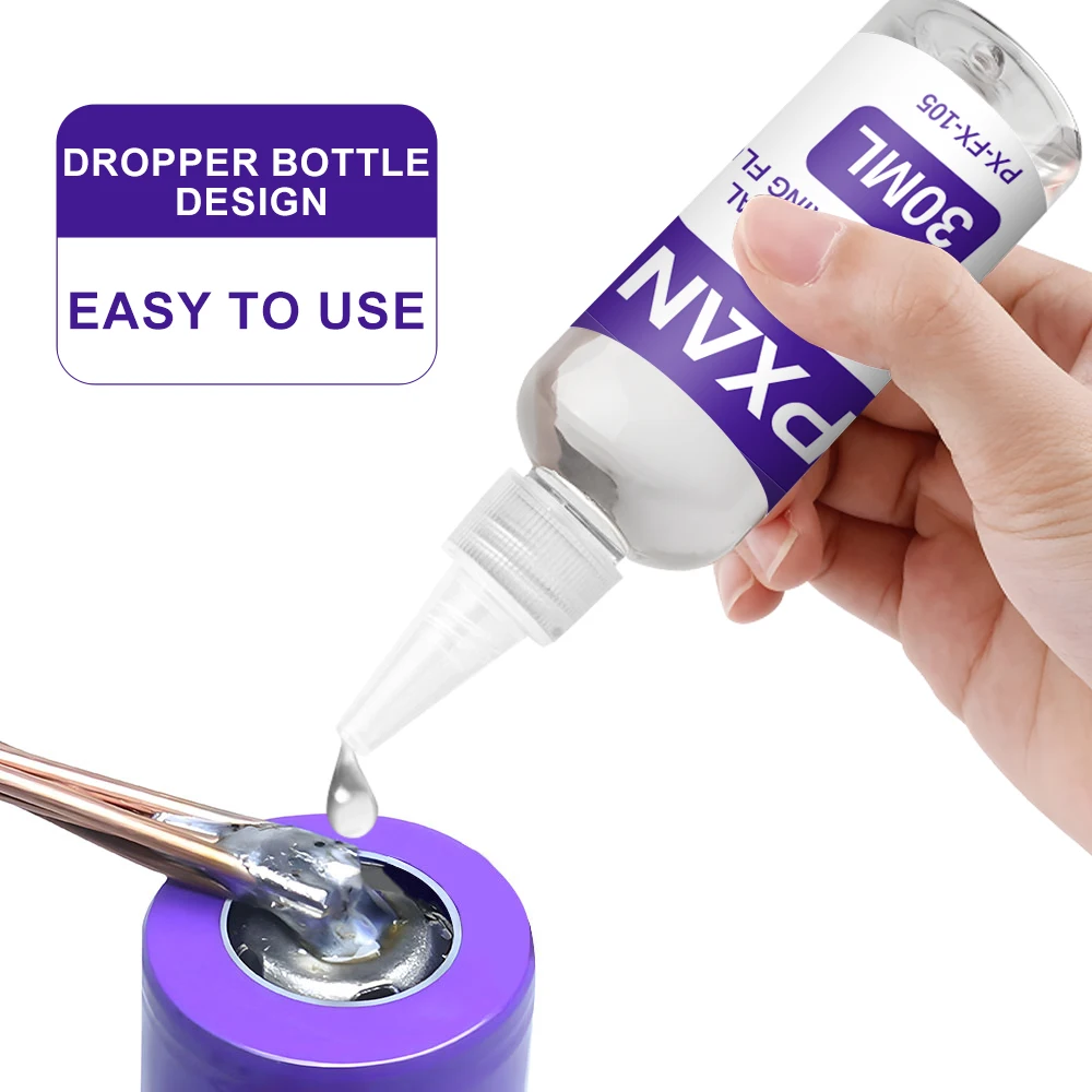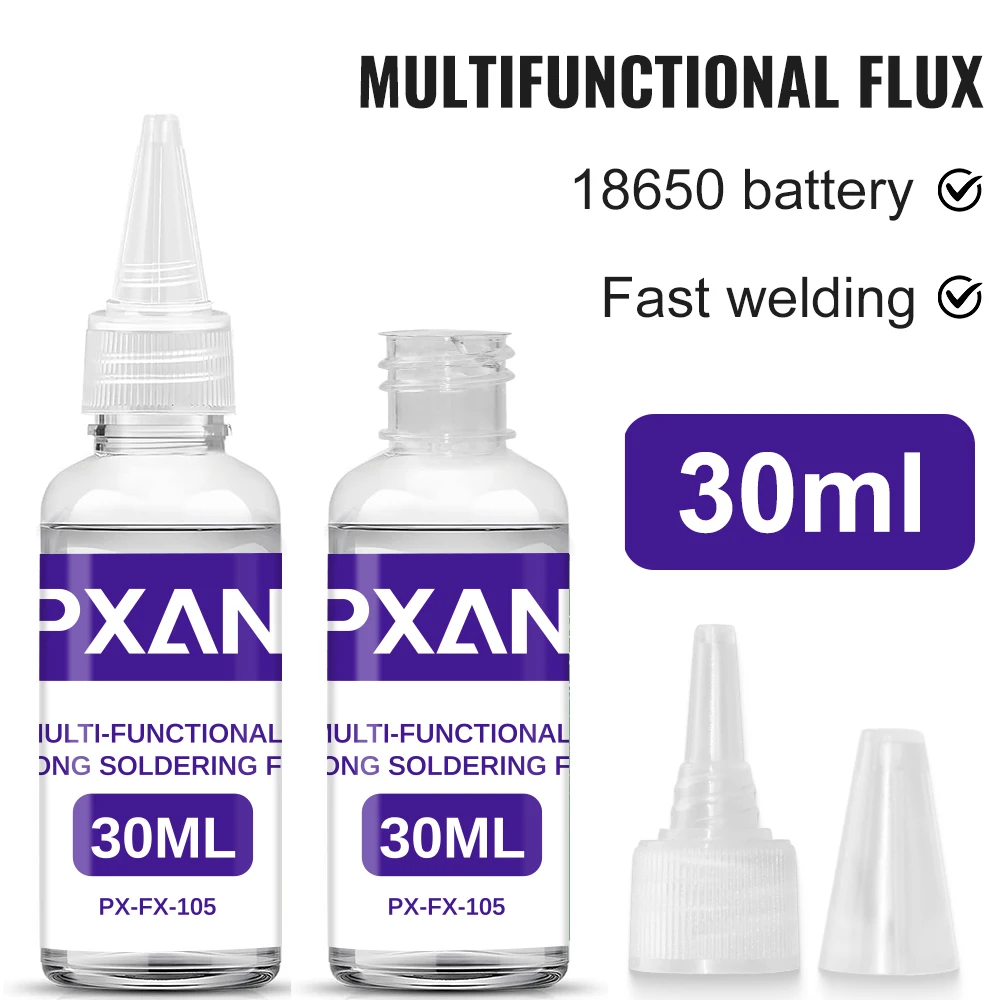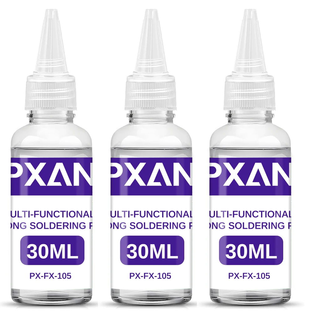 Imagine effortlessly achieving perfect solder joints on stainless steel, copper, iron, nickel, galvanized sheets, or aluminum with this precision liquid flux. Designed for adult enthusiasts and professionals alike, this flux enhances your metalworking projects by providing a clean, reliable bond without the need for further cleaning. Its user-friendly 30ml bottles and pointed, conical nozzle caps ensure precise application directly onto metal surfaces. The sleek, transparent plastic bottles with modern white and purple labels exude professionalism, making your workspace look tidy and efficient. Whether you're repairing, fabricating, or crafting, this multifunctional flux offers the control and consistency you need. Elevate your soldering experience with this reliable, chemical-free solution for all your metal soldering needs.