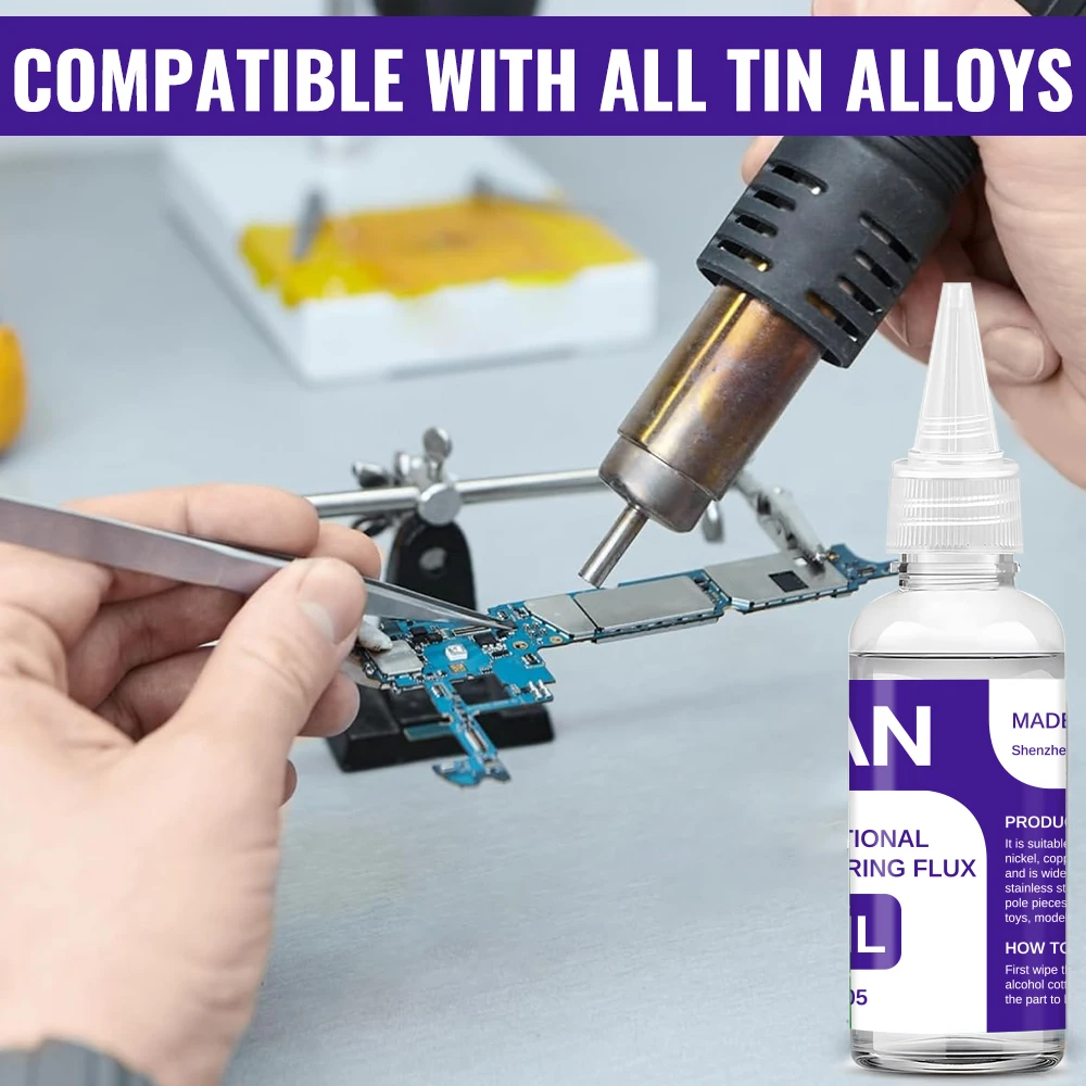 - This liquid flux is suitable for soldering stainless steel, copper, iron, nickel, galvanized sheet, and aluminum, ensuring versatile use across various metal surfaces in your projects.