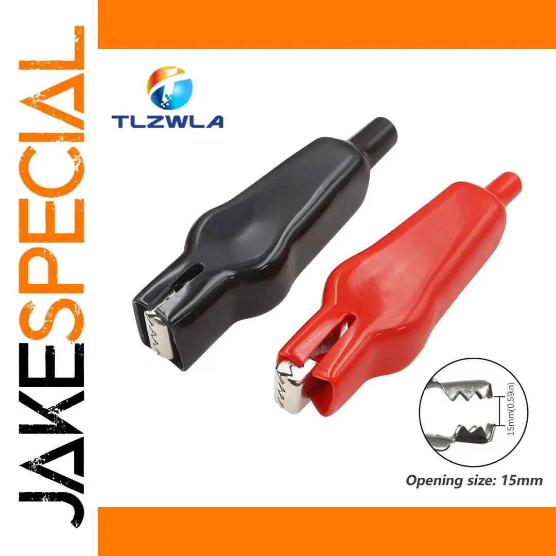 Experience the convenience and reliability of this set of two alligator clips, perfect for electrical testing, jumper wire connections, and DIY projects. Measuring approximately 70mm in length, these clips feature durable copper metal jaws with serrated, zigzag interiors for a firm grip on wires and conductors. The insulated plastic housing, made from paste resin, provides excellent durability and safety, with options for semi-insulation. Designed to withstand voltages up to 300V and currents up to 20A, they ensure secure connections during demanding electrical tasks. These clips are weldable, allowing for an even more secure attachment and reliable performance. Their vibrant red and black colors facilitate easy identification, helping you organize your work efficiently. With CE and RoHS certifications, they meet safety standards for professional and hobbyist use.