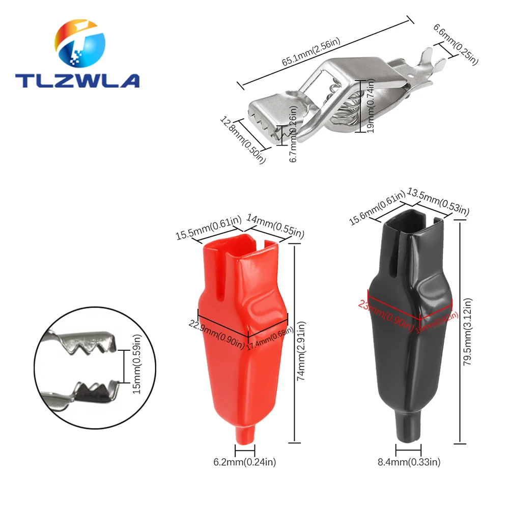 - Each clip measures approximately 70mm long, featuring reinforced copper jaws with serrated gripping teeth for a secure hold on wires and conductors.