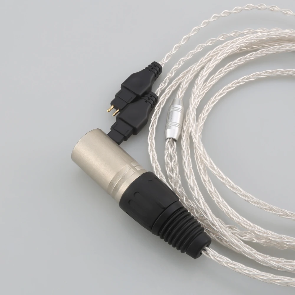 - Has a 4-pin XLR male connector with a silver cylindrical body and black ribbed strain relief, paired with compatible 3.5mm, 2.5mm, or 4.4mm jack options for flexible connection.