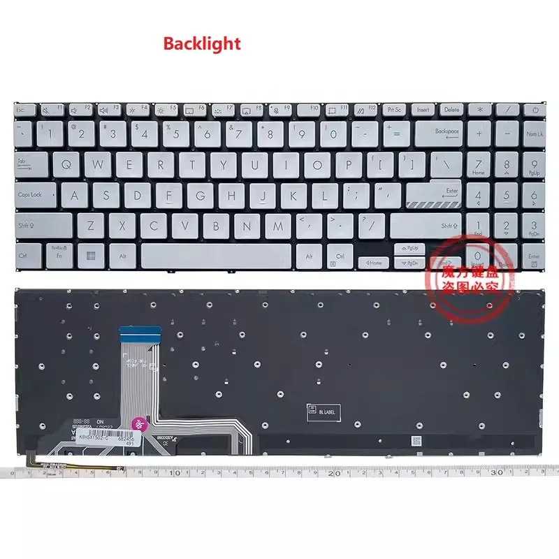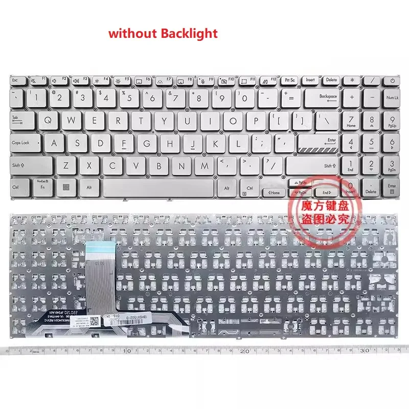 Enhance your ASUS VivoBook 15 with this high-quality, silver US standard keyboard, available in backlit or non-backlit versions. Compatible models include M1603Q, M1503Q, M1502, M1502Z, C2022, Pro16, X1605V, X1603Z, and X1603ZA. Designed for seamless integration, this keyboard features a sleek, modern appearance with slightly rounded rectangular keys, bold black lettering for clear visibility, and a black backing for subtle contrast. Tested for 100% functionality, it includes part numbers such as X1603Z, X1603ZA, K6602Z, and supports easy connection via attached ribbon cable. Perfect for restoring or upgrading your device’s performance and style.