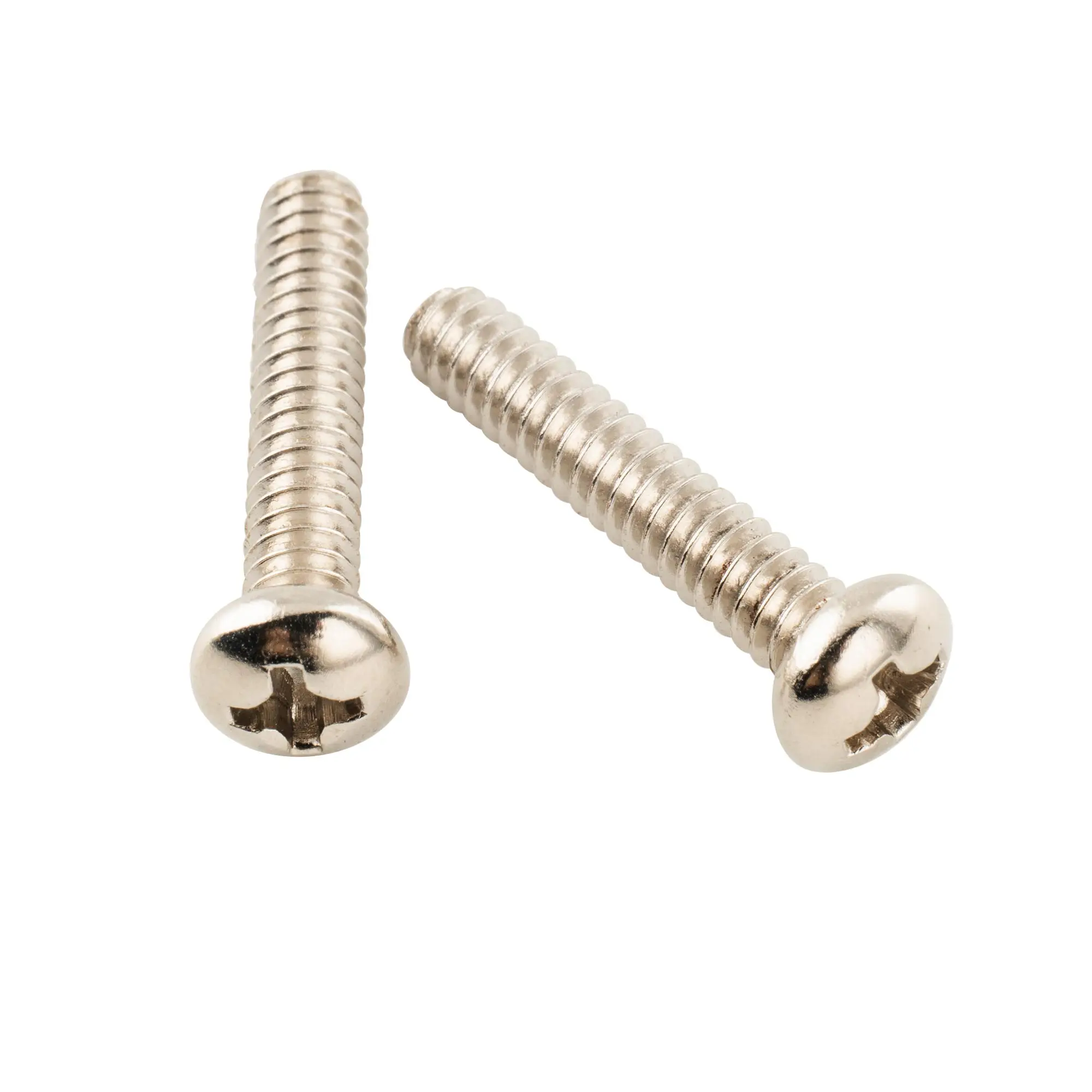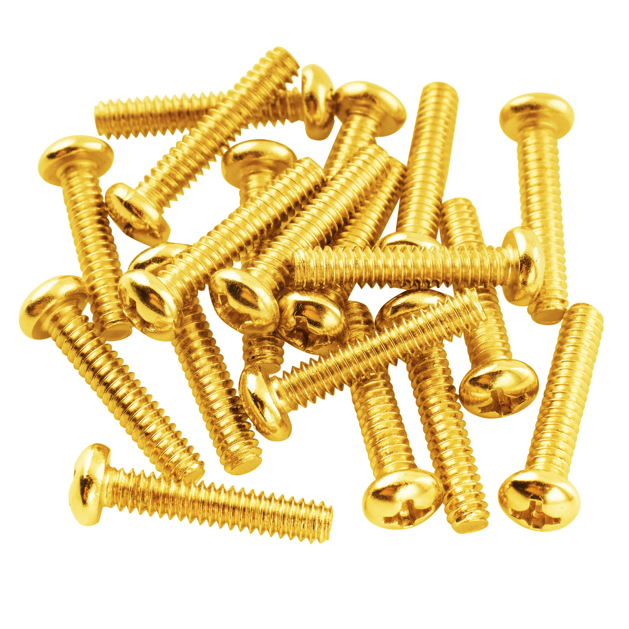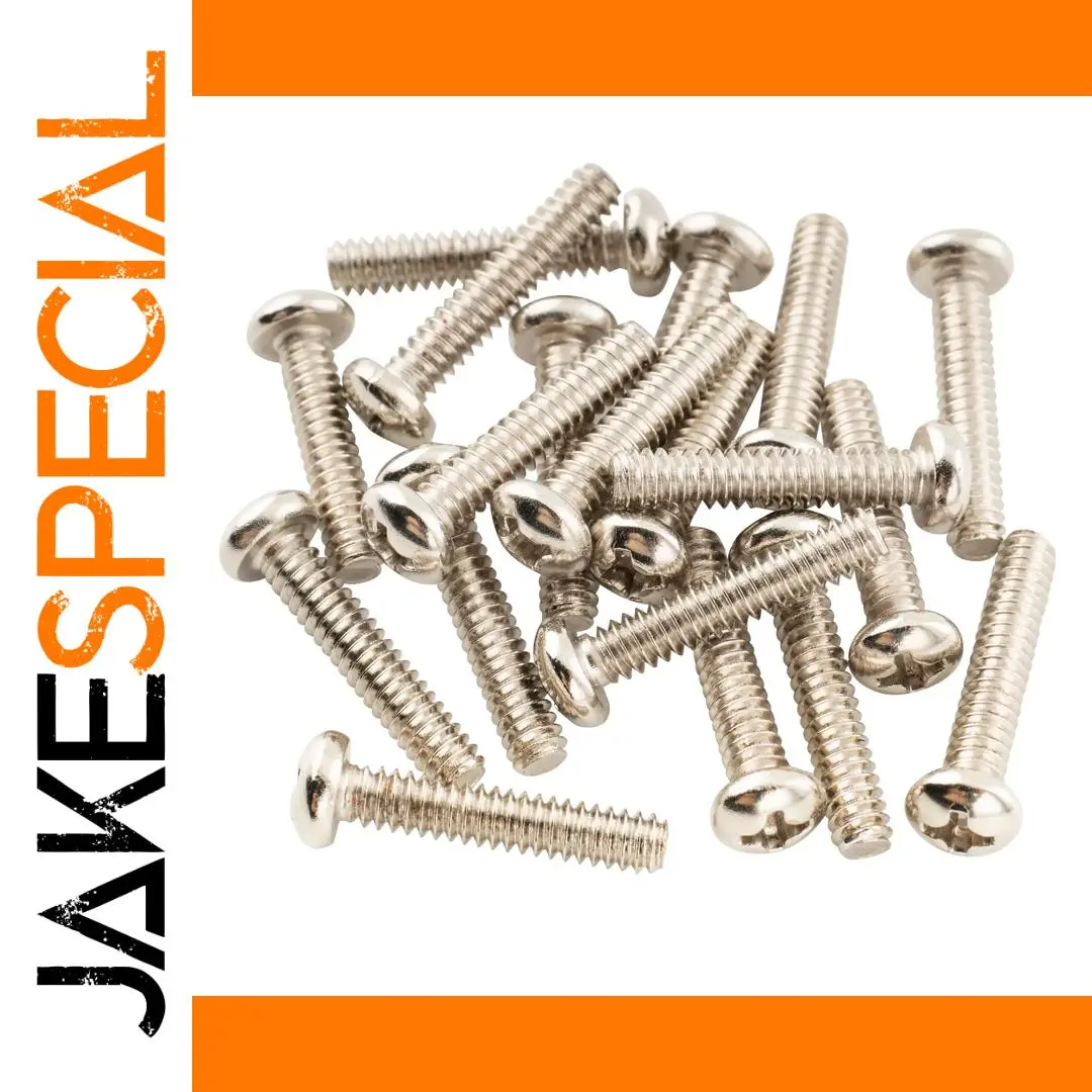 Imagine upgrading or replacing your guitar's pickup screws with this set for a sleek, professional look and enhanced stability. Crafted from durable steel with a shiny, polished finish, these screws provide both strength and an attractive appearance. Each screw features a smooth, slightly domed pan head that sits comfortably on the guitar surface, ensuring a clean and tidy setup. The precise Phillips drive allows easy installation and adjustment. Designed with a UNC#6-32 thread, measuring 3.5mm (9/64 inch) in diameter and 18mm (45/64 inch) long, these screws fit standard Strat-style single coil pickups perfectly. Their uniform, finely cut threads ensure a secure fit, making them ideal for any guitar enthusiast or professional looking for reliable hardware upgrades.