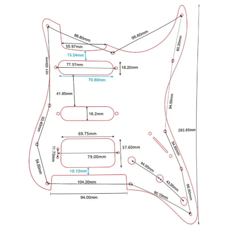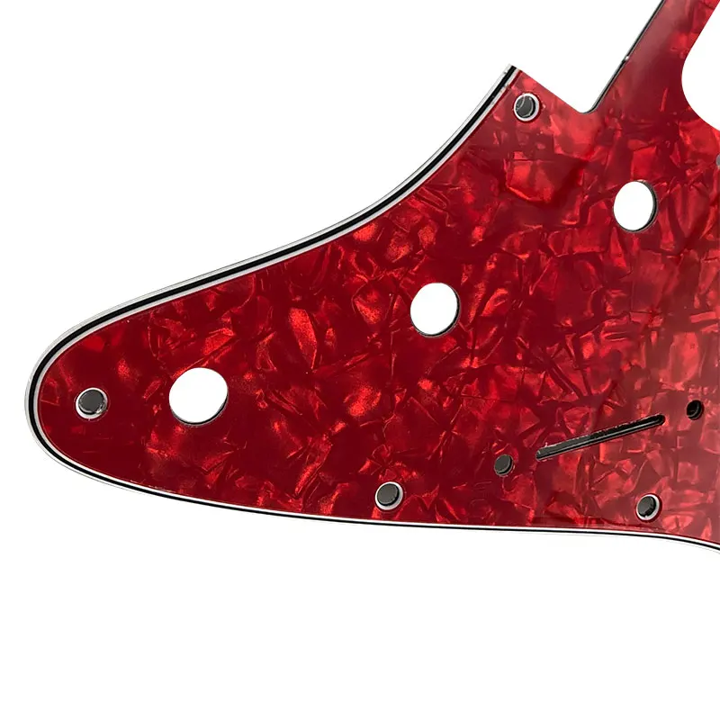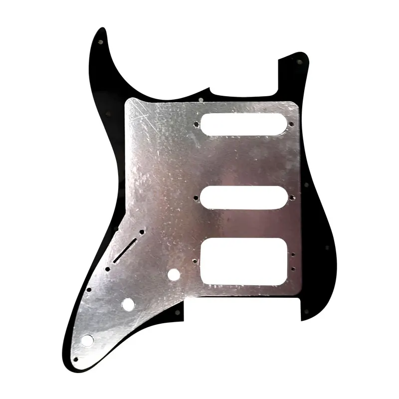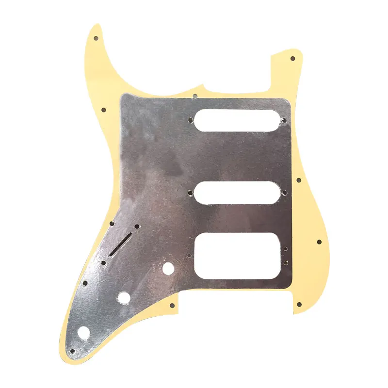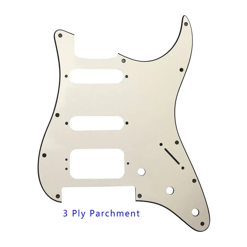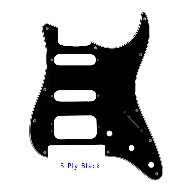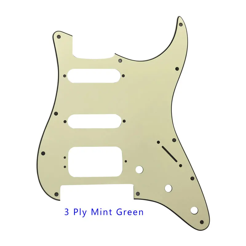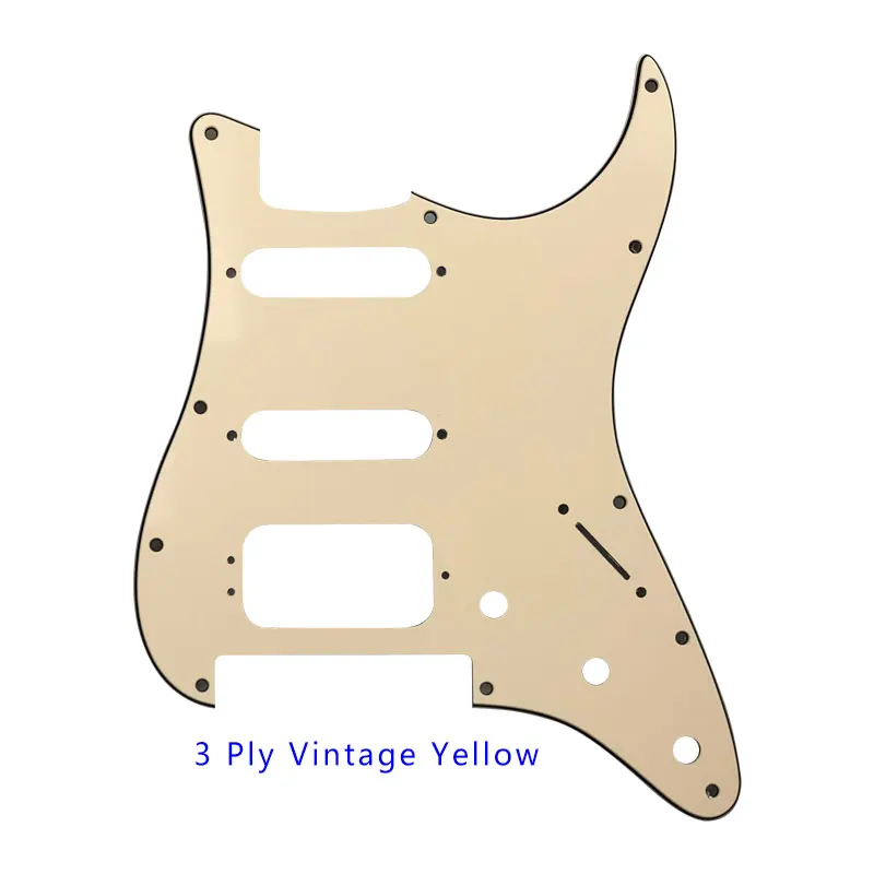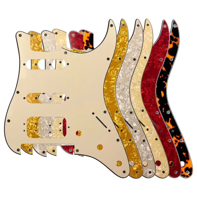 Enhance your US Stratocaster with this high-quality guitar pickguard, designed specifically for models with 11 screw holes and Floyd Rose tremolo bridges. Crafted from 3-ply or 4-ply composite materials, it offers excellent anti-scratch protection and features a real aluminum foil shield for noise reduction. Weighing approximately 200 grams, it includes 11 mounting screws and a protective film on top. Available in a variety of eye-catching colors such as mint green, parchment pearl, cream pearl, white, tortoise shell, leopard print, red pearl, vintage yellow, black, and golden pearl, this brand-new pickguard allows for easy customization, protecting your guitar while elevating its aesthetic appeal.