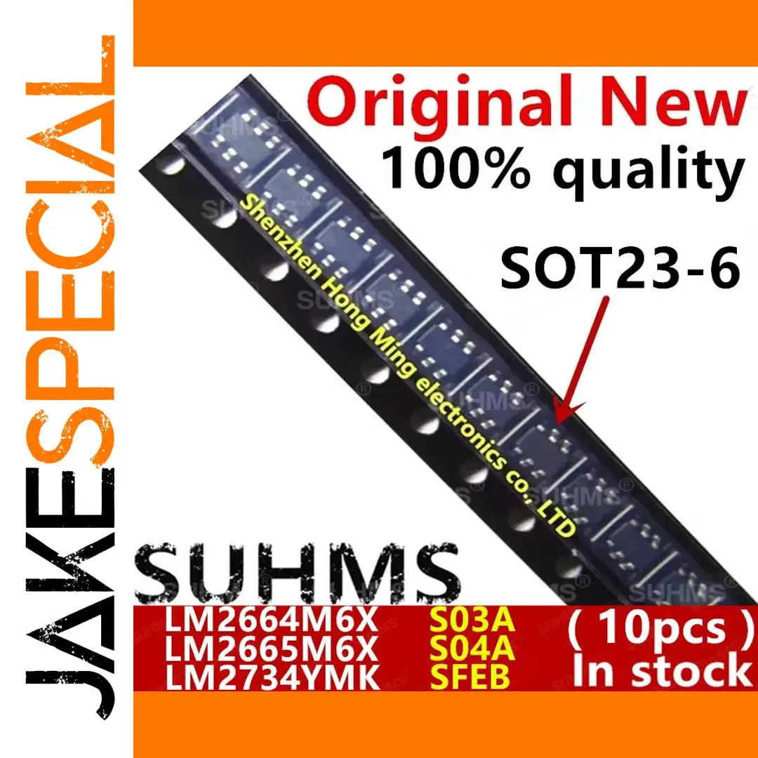 Enhance your electronic projects with this set of 10 high-quality voltage regulators in SOT23-6 packages, featuring models including LM2664M6X, LM2665M6X, LM2664M, LM2665M, LM2734YMK/NOPB, LM2734YMK, and SFEB. These compact, brand-new regulators operate within standard supply voltages and dissipate power efficiently, making them ideal for computer and other electronic applications. Each component is designed for reliable performance across a broad temperature range, with a sleek, sturdy black surface and precise white alphanumeric markings. Customizable and free from hazardous chemicals, this professional-grade set is perfect for enhancing your circuitry with trustworthy, industry-standard voltage regulation.