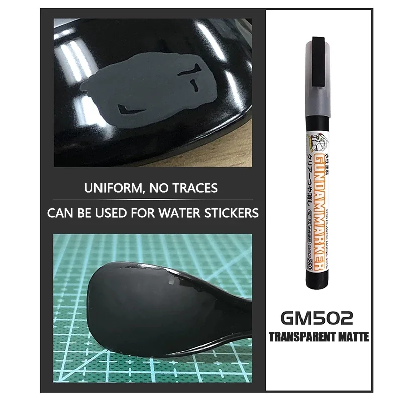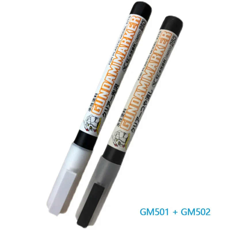 Elevate your modeling projects with this set of two high-quality water-based model markers from Japan, featuring GM501 transparent glossy and GM502 transparent matte finishes. Each set includes two markers designed specifically for detailed painting and customization of model kits, with sleek cylindrical bodies and minimalistic design for precise handling. The GM501 offers a glossy, clear finish, while the GM502 provides a subtle matte effect, helping you achieve professional-looking results. Perfect for enthusiasts seeking versatile, easy-to-apply paint tools, these markers are ideal for adding intricate details, highlights, or shading to your models. Enhance your craftsmanship with these durable, finely crafted markers today.