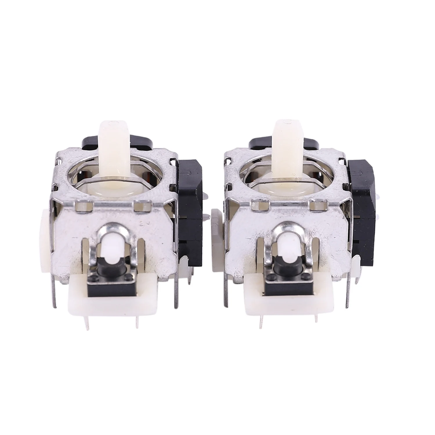 Experience precise control and smooth gameplay with this set of two 3D analog vibration joystick thumbstick controller modules. Crafted from durable ABS plastic and polished metal, each module boasts a sleek, minimalist design that combines industrial precision with a functional aesthetic. Measuring 16mm by 16mm with an 8mm height, these modules are compact and easy to install, making them ideal for repairing or customizing Xbox 360 and PS2 controllers. The smooth, rounded white plastic stalk provides ergonomic comfort, while the black square faceplate and brown resistance component add visual elegance. Designed for reliable, quick response, these modules ensure optimal game performance. Replace your worn-out thumbsticks confidently, knowing these modules guarantee longevity and seamless operation.