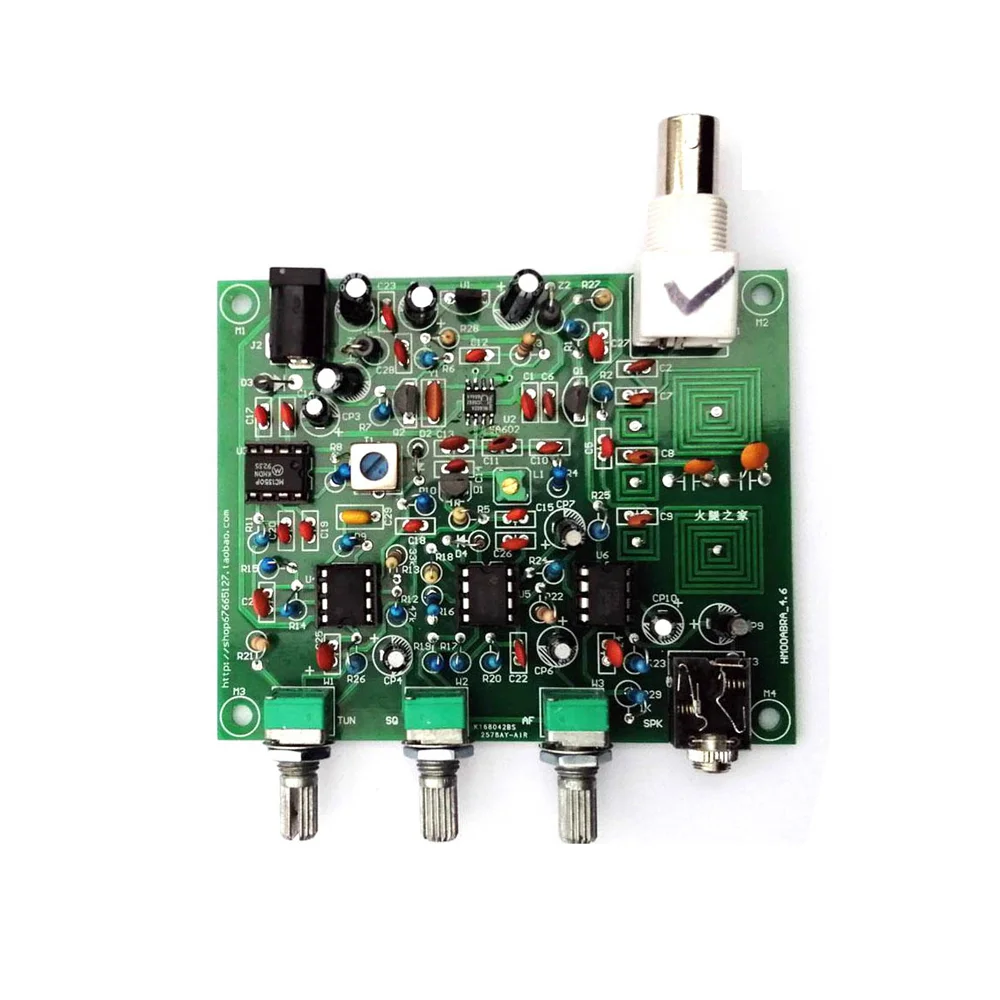 Immerse yourself in the world of aviation communication with this meticulously crafted DIY radio kit. Featuring a vibrant green, multi-layer PCB, it’s designed for enthusiasts who value precision and performance. The compact layout showcases surface-mount resistors, ceramic capacitors, and black integrated circuits with distinctive white markings. The prominent white L-shaped RF connector ensures easy antenna attachment, while red and blue LEDs serve as functional status indicators. Adjustable green, ridged potentiometers labeled “TUN” and “SPK” allow for precise tuning and volume control, giving you full command over your communication experience. Whether building for hobby, professional, or experimental purposes, this kit offers a reliable and visually engaging platform that sparks confidence and skill, making aviation communication more accessible and enjoyable.