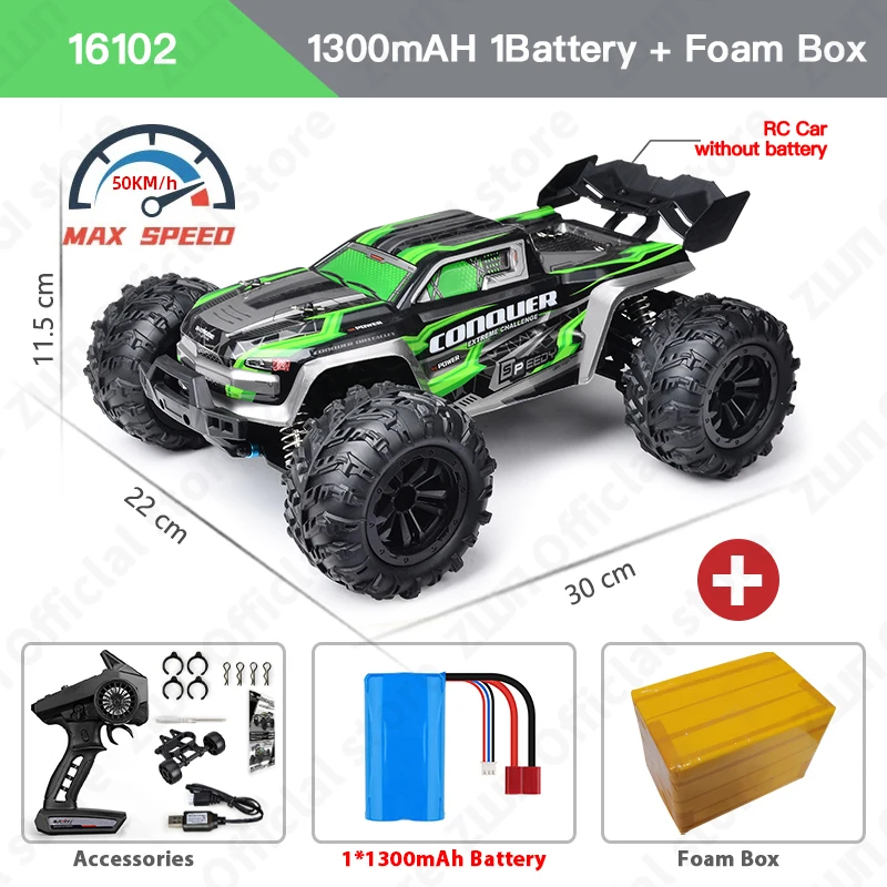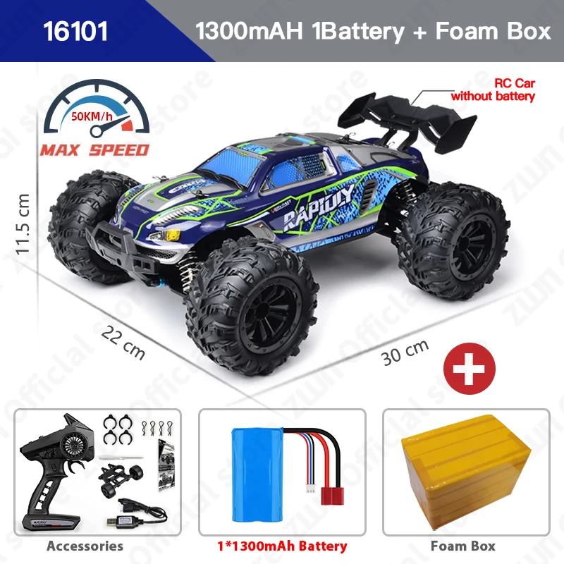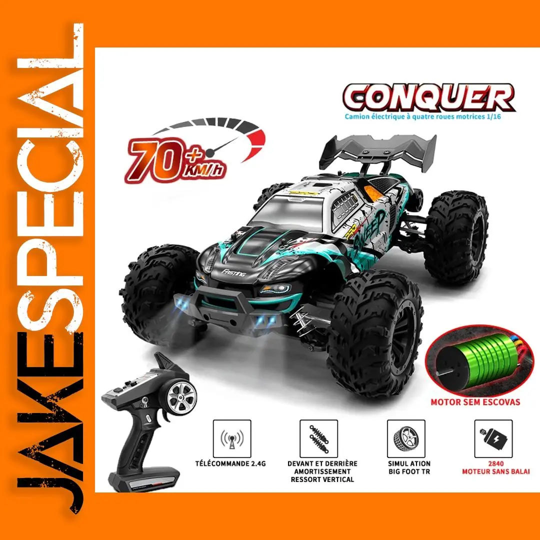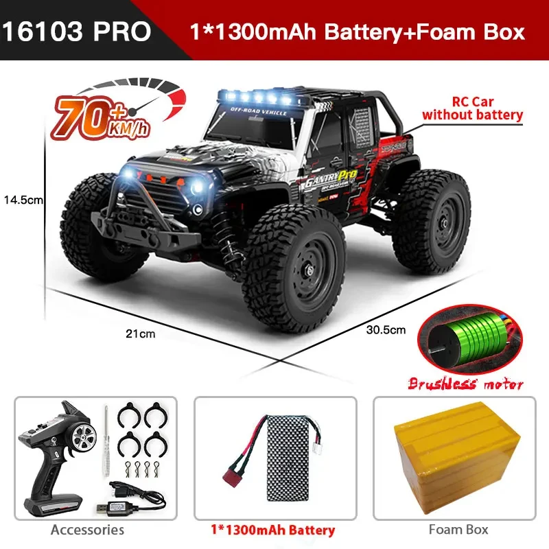 - Powerful 2840 brushless motor reaches top speeds of 70 km/h for thrilling races.
