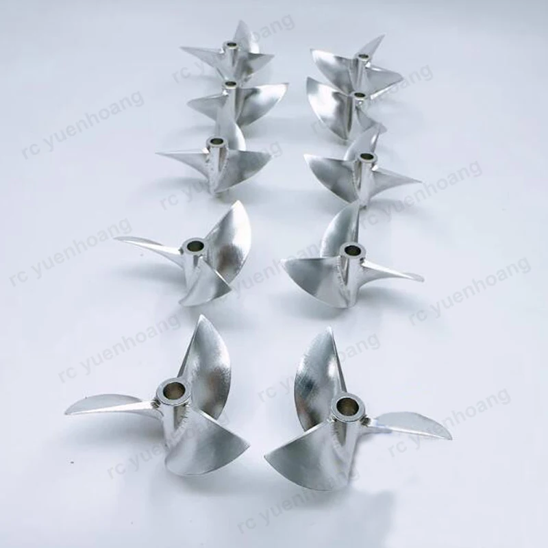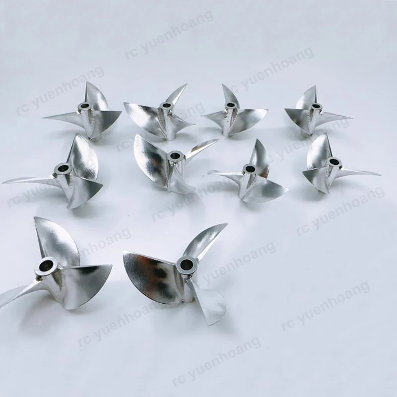 Experience next-level performance with this high-speed aluminum RC boat propeller, meticulously crafted for enthusiasts who demand durability, efficiency, and speed. Made from CNC-machined aluminum alloy with an anodized, corrosion-resistant finish, it boasts a sleek, reflective surface that adds a modern touch to your vessel. Its three-blade design is carefully curved and tapered, ensuring smooth water flow and maximum propulsion with every rotation. Available in diameters from 46mm to 52mm, this propeller allows precise tuning for your specific model. The 1.9mm blade pitch guarantees optimal speed and stability, while the 4.76mm central shaft hole ensures compatibility with most RC boat shafts. Designed for semi-submerged operation, it delivers excellent maneuverability and power transfer, perfect for competitive racing or leisure cruising. Elevate your RC boating experience today with this professional-grade component.