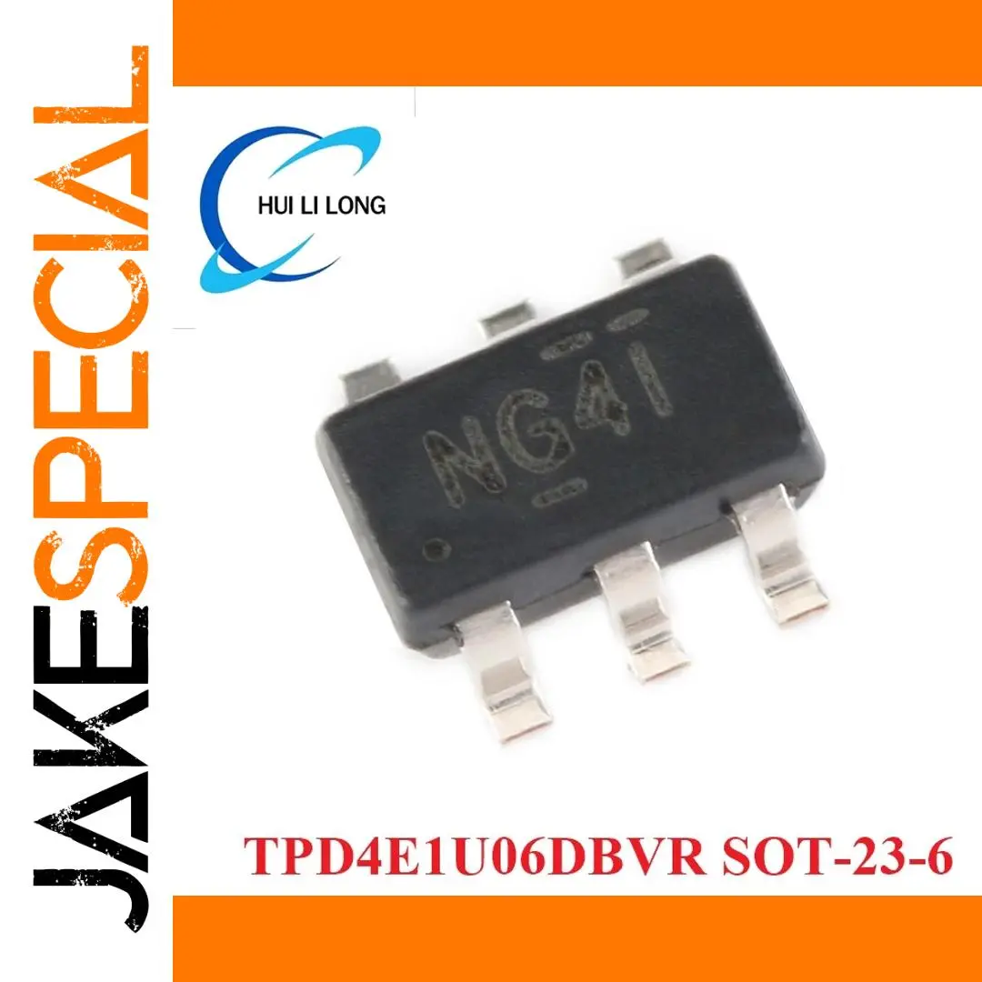 Experience the reliability of this high-speed TPD4E1U06DBVR ESD protection device, crafted to safeguard your sensitive electronics from electrostatic discharge. Packaged in a compact SOT23-6 form factor, this component features a sleek black plastic body with a matte finish that effortlessly integrates into modern circuit boards. Its four-channel setup ensures comprehensive protection across multiple lines, enhancing device durability and performance. The metallic leads, gracefully bent from three sides, provide easy soldering and secure connections. Silkscreen markings, displaying the model number “NG41,” lend a subtle vintage touch to its functional design. Whether you're designing high-tech gear or upgrading existing devices, this product offers tailored protection for complex electronic systems, ensuring long-lasting reliability and stability in your projects.