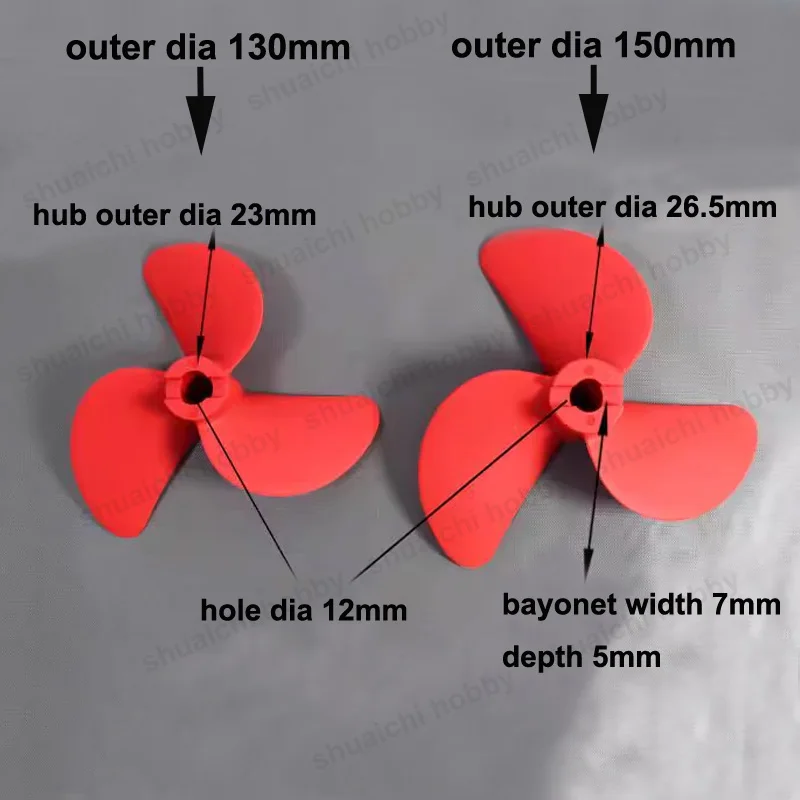 - Available in two sizes—130mm and 150mm outer diameter—with a 12mm mounting hole and respective hole depths of 37mm and 41mm for versatile compatibility with various RC boat models.