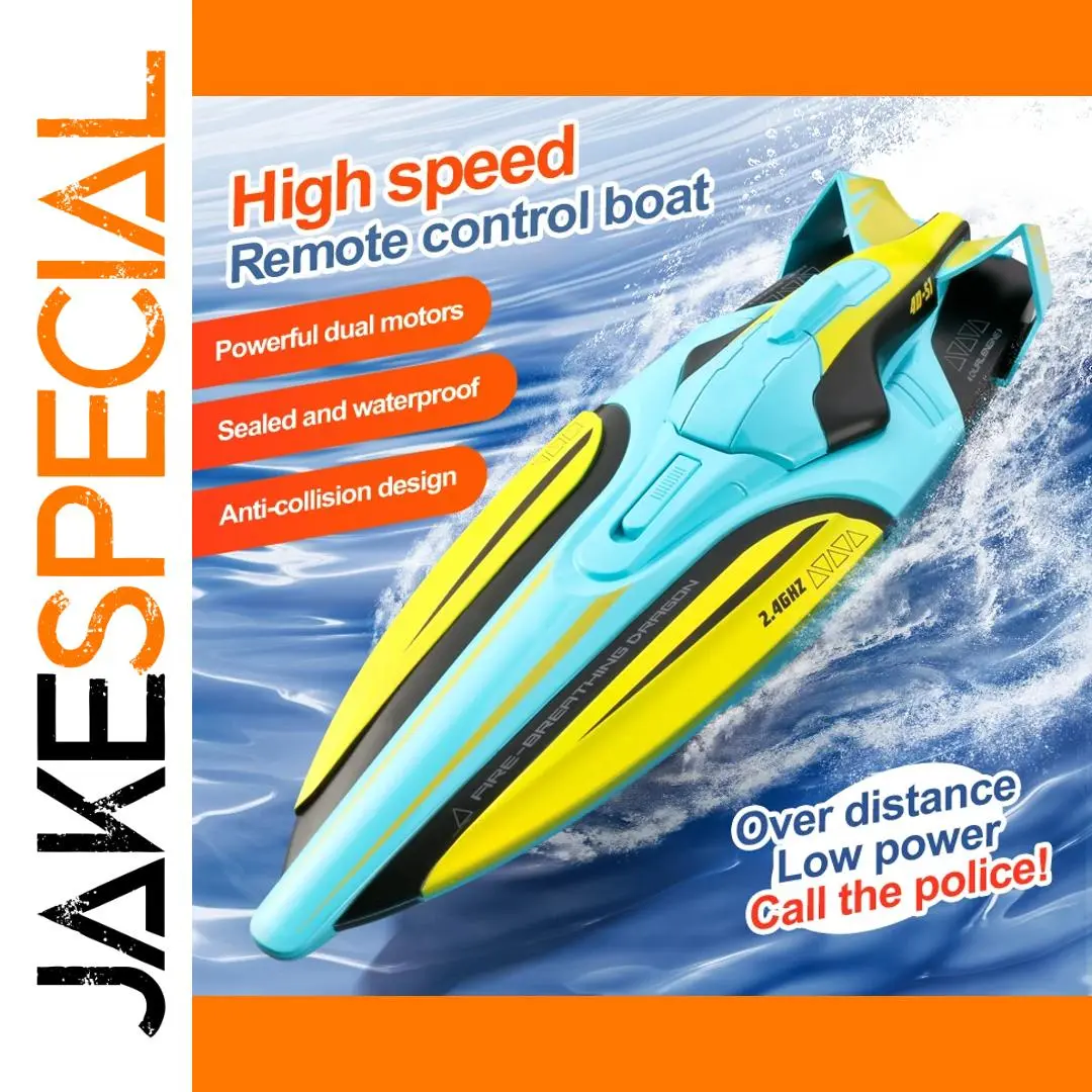 Experience high-speed water racing with this sleek remote-controlled boat measuring 35cm in length, 10cm in width, and 8cm in height. Equipped with a powerful dual motor setup, it can reach impressive speeds and offers up to 30 minutes of runtime on a 7.4V, 800mAh rechargeable battery that charges fully in approximately 120 minutes. The intuitive Mode 1 controller operates within a 100-meter range across 4 channels, ensuring precise control over water, making it perfect for enthusiasts aged 14 and above. Crafted from durable plastic, PU, and rubber, this waterproof speedboat is ready to race straight out of the box, available in stylish grey and green options for energetic water adventures.