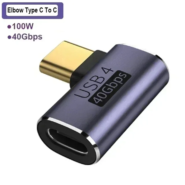 Experience seamless connectivity with this premium high-speed USB4.0 OTG adapter designed for maximum efficiency. Crafted from durable aluminum alloy and PVC, it features a sleek, modern cylindrical shape with a metallic purple and silver finish, complemented by black accents at the connectors. The 90-degree angled Type-C male to female connection ensures easy access in tight spaces, making it ideal for laptops, tablets, and smartphones. Supporting data transfer rates of up to 40Gbps and delivering 100W of power, this adapter allows fast charging and high-quality 8K audio-video transmission. Its refined design combines functionality and durability, providing a reliable solution for your high-performance digital needs while enhancing your device's aesthetics.