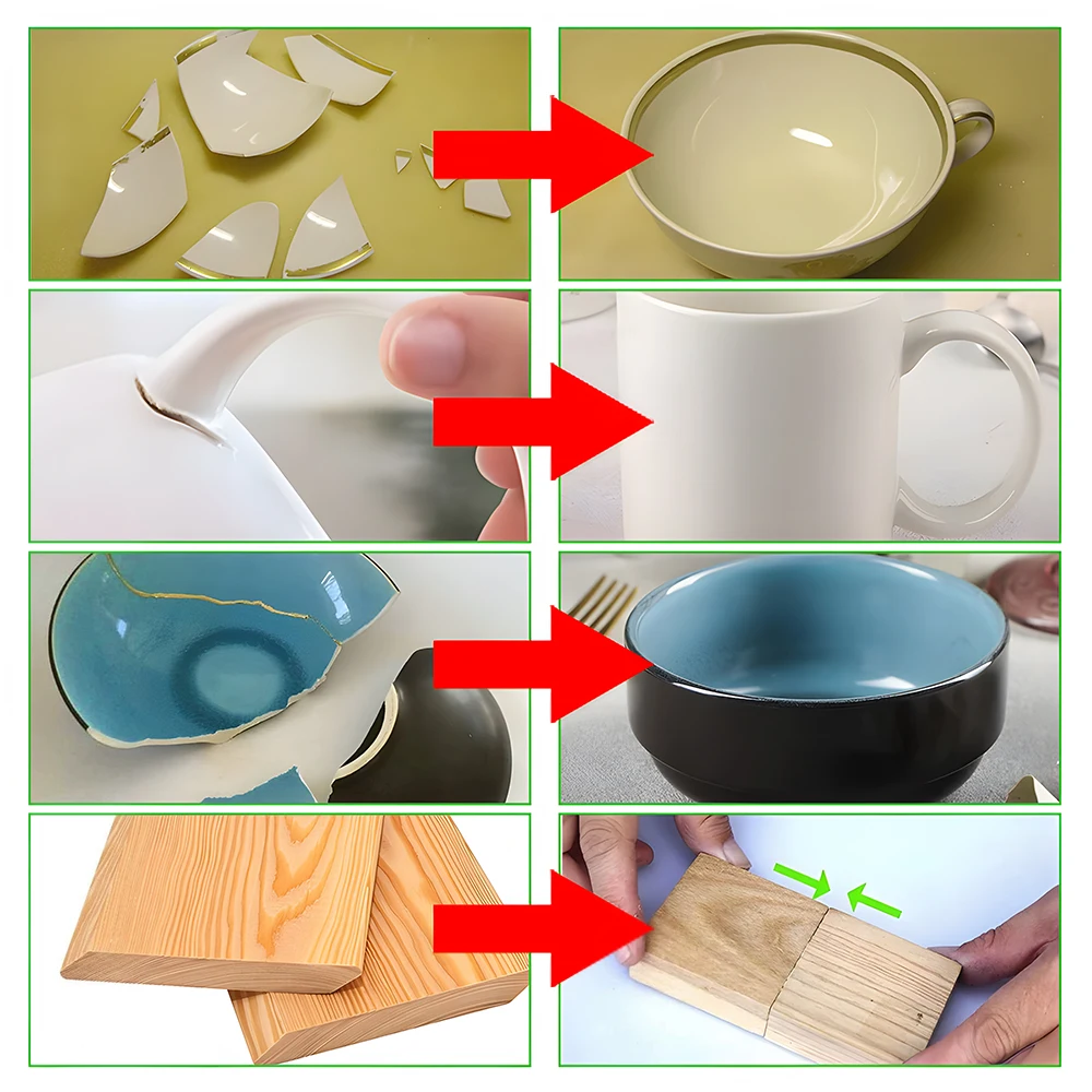 - Waterproof, shockproof, odorless, solvent-free, and dries clear, ensuring invisible, durable repairs suitable for resin, ceramic, metal, glass, leather, cork, wood, fabric, paper, and rubber.