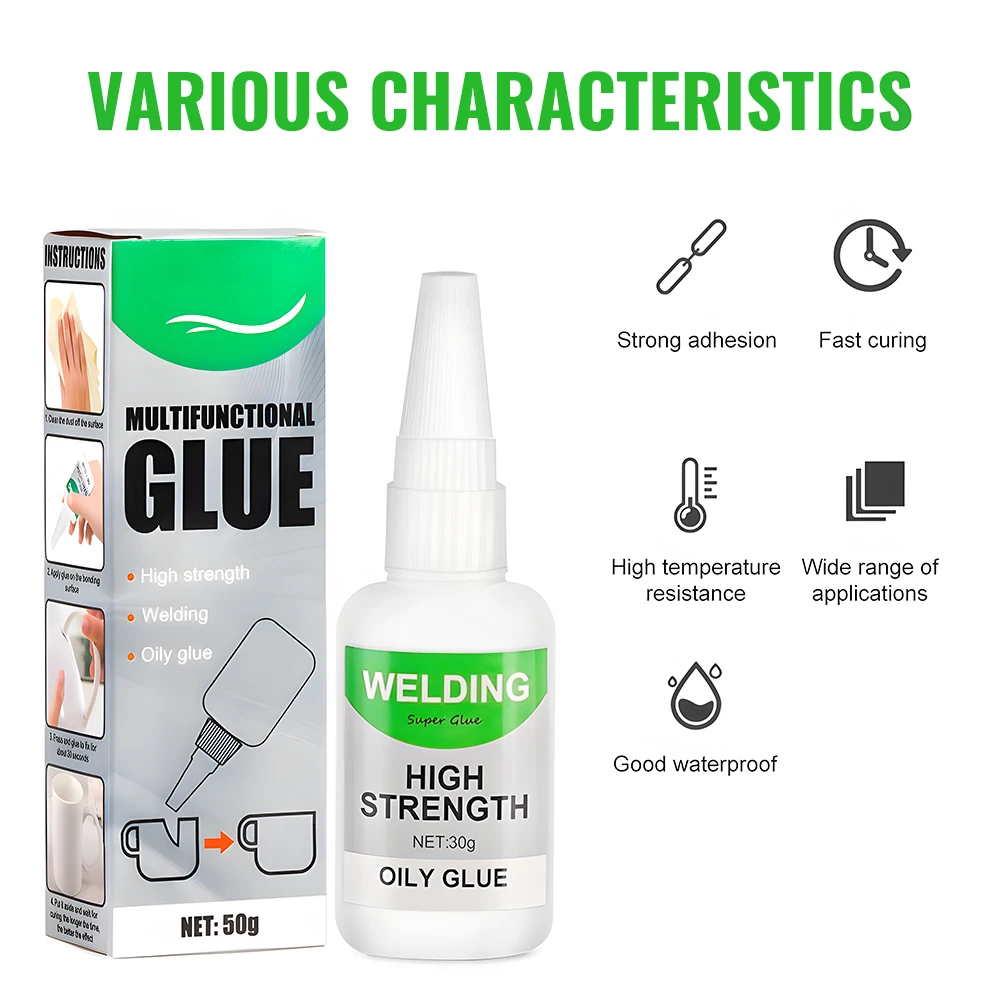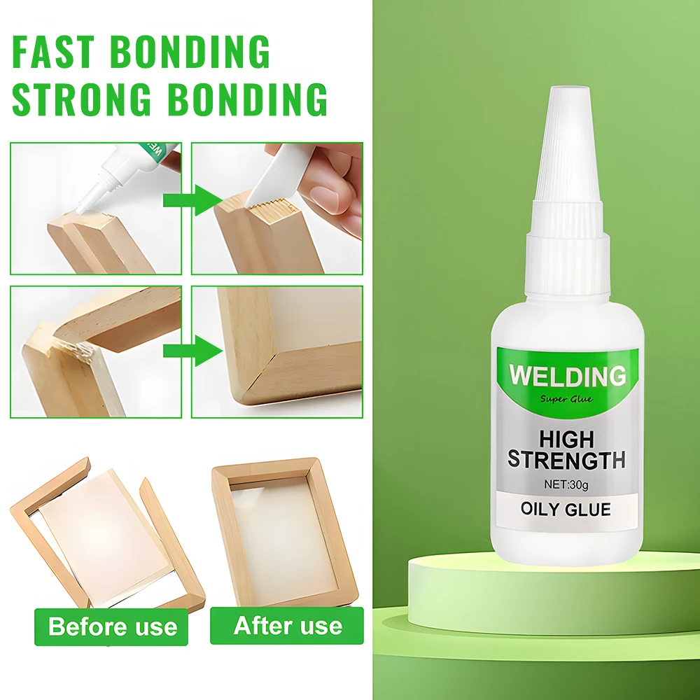 Experience the power of this high-strength, oily super glue designed for versatile, fast, and reliable bonding. With a sleek and professional white bottle featuring a precise, elongated nozzle, this adhesive offers effortless control for detailed applications. The vibrant green label highlights its professional-grade quality and impact-resistance features, making it an essential tool for repairs and crafting. Boasting a quick bonding time of just 8–10 seconds, it penetrates micro-fractures, pores, and cracks to create a durable, waterproof, and shockproof bond. Its odorless, solvent-free formula stays clear after drying, ensuring clean, invisible repairs that last even after multiple washes or tension. Simplify your projects with this reliable, user-friendly super glue.