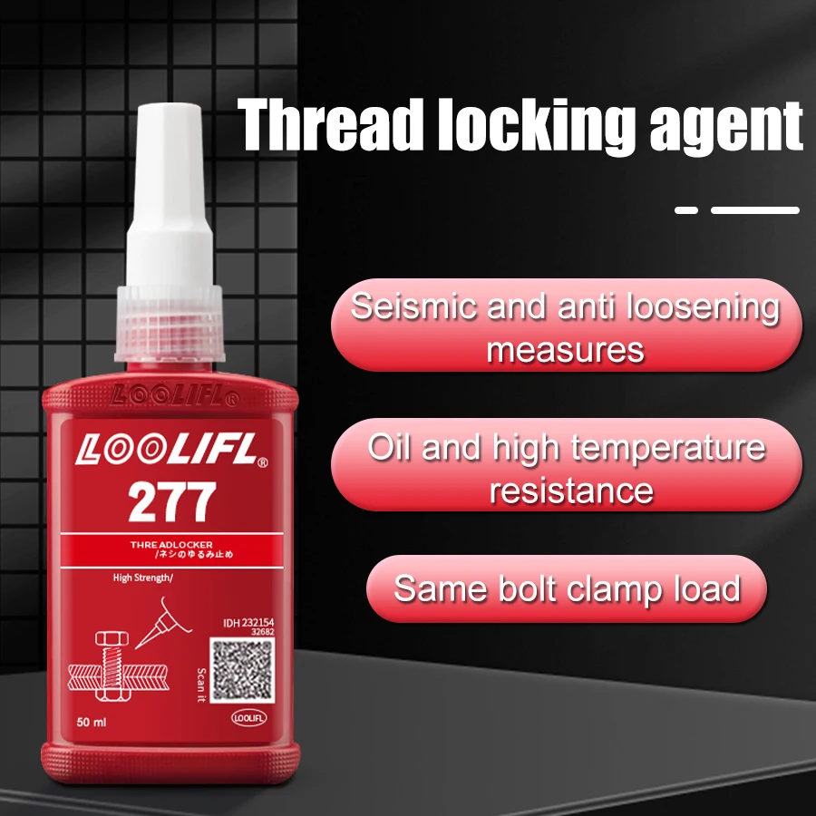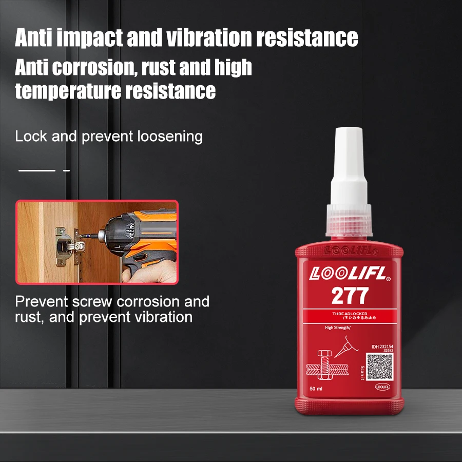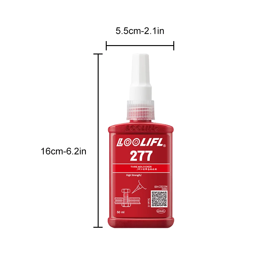 Experience reliable and durable fastening with this high-strength automotive screw glue, featuring a vibrant red 50 ml plastic bottle measuring 2 cm wide, 160 mm long, and 6.5 mm high. Designed for secure attachment of automotive parts and fixtures, it offers superior adhesion, oil resistance, and anti-loosening properties. Available in packages of 1, 2, or 3 pieces, each weighing 50 grams, this industrial-style adhesive boasts a sleek, modern design with a white precision applicator cap. Perfect for maintaining the integrity of automotive and mechanical assemblies, it ensures long-lasting performance with a clean, functional aesthetic that exudes scientific reliability.