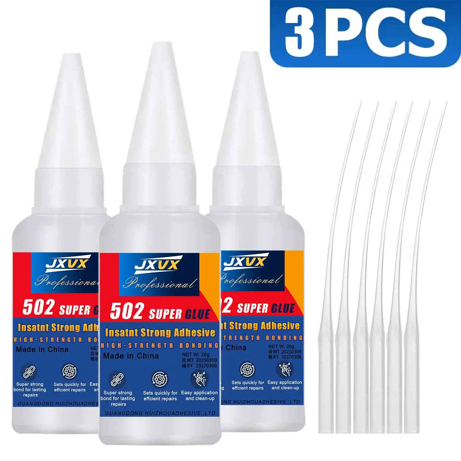 Experience the power of this high-strength JXVX 502 Super Glue, designed for quick, reliable bonding on a variety of materials. Its clear liquid formula provides rapid drying within approximately 10 seconds, ensuring your projects stay efficient and mess-free. The sleek, transparent bottles feature precise white nozzle caps for controlled application, making it easy for you to apply the glue exactly where needed. Whether repairing leather, rubber, wood, metal, plastics, glass, resins, or ceramics, this adhesive offers strong, durable bonds. Its low whitening and odor ensure a clean and comfortable user experience. Compact yet powerful, this product is essential for both DIY enthusiasts and professionals who demand high-performance adhesive results.