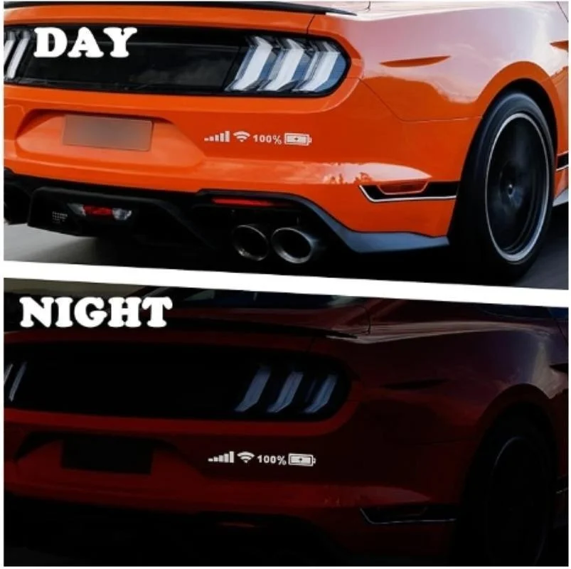 Enhance your vehicle’s look with this 45 x 5 cm reflective car sticker made from durable waterproof vinyl material. Featuring a high-tech digital display style with signal, Wi-Fi, and battery icons in vibrant colors such as red, yellow, purple, and cyan, this decal adds a futuristic touch. The white variant appears silver during the day and becomes highly reflective at night when illuminated. Its self-adhesive, single-use design ensures easy application to cars, motorcycles, bicycles, electric vehicles, skateboards, or laptops without damaging surfaces or leaving marks. Waterproof and scratch-resistant, it can be removed effortlessly by heating, making it perfect for personalized decoration.