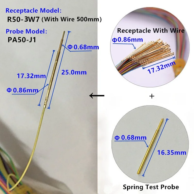 Keys features of the product Spring Test Probe R50-3W-500mm