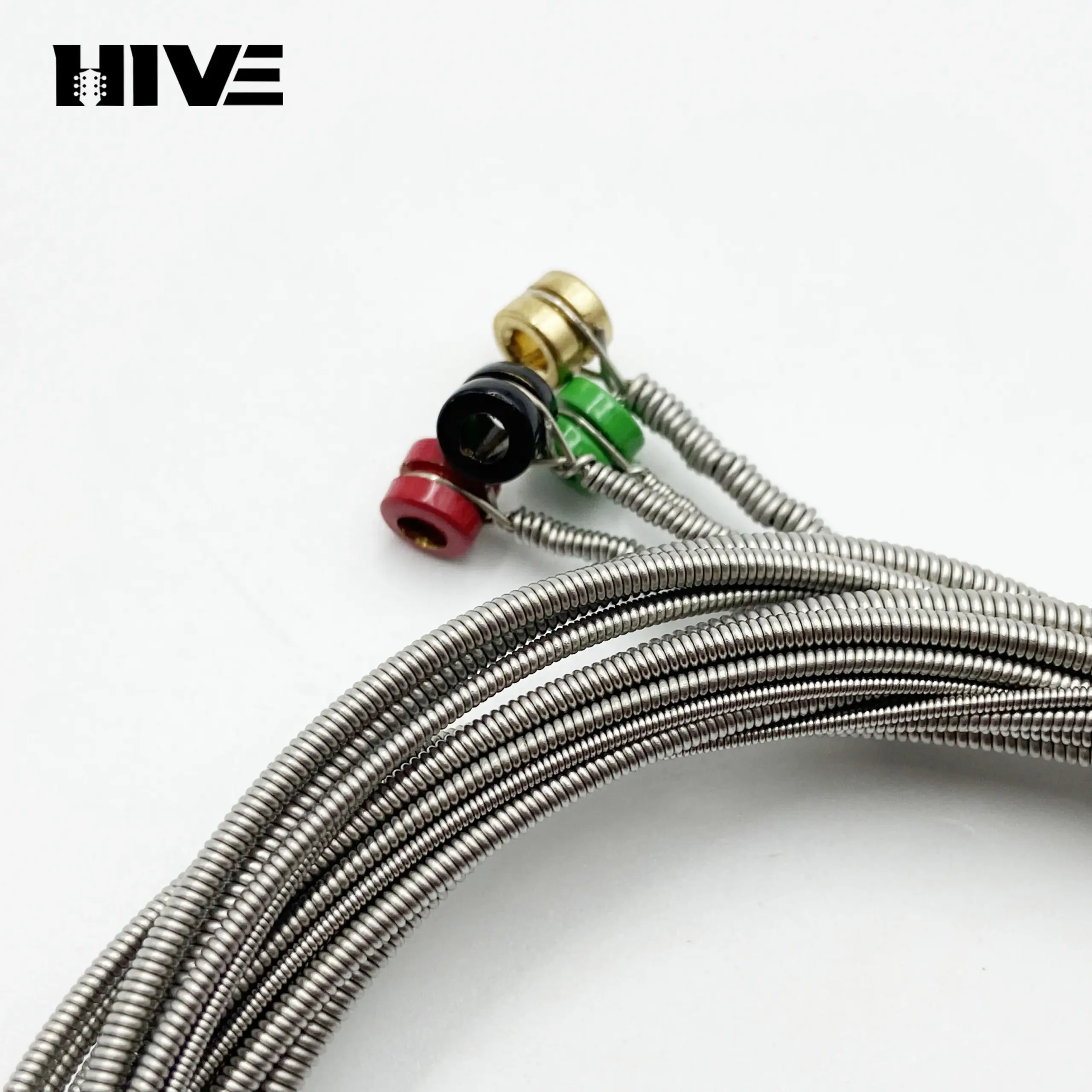 Experience superior sound and durability with this carefully crafted set of four electric bass strings. Designed with high-tension hexagonal steel cores approximately 1.2 meters in length, these strings offer excellent stability and tuning precision for professional bass players. The sleek, metallic finish combined with nickel-pure copper winding provides a smooth, reflective surface that enhances both aesthetics and performance. Each string features a distinct color-coded bead head—red, black, green, and yellow—making installation and identification simple. With a total weight of just 78.3 grams per set, these strings deliver powerful projection, clarity, and sustain for all your musical needs. Perfect for bass guitar enthusiasts who demand quality and reliability.