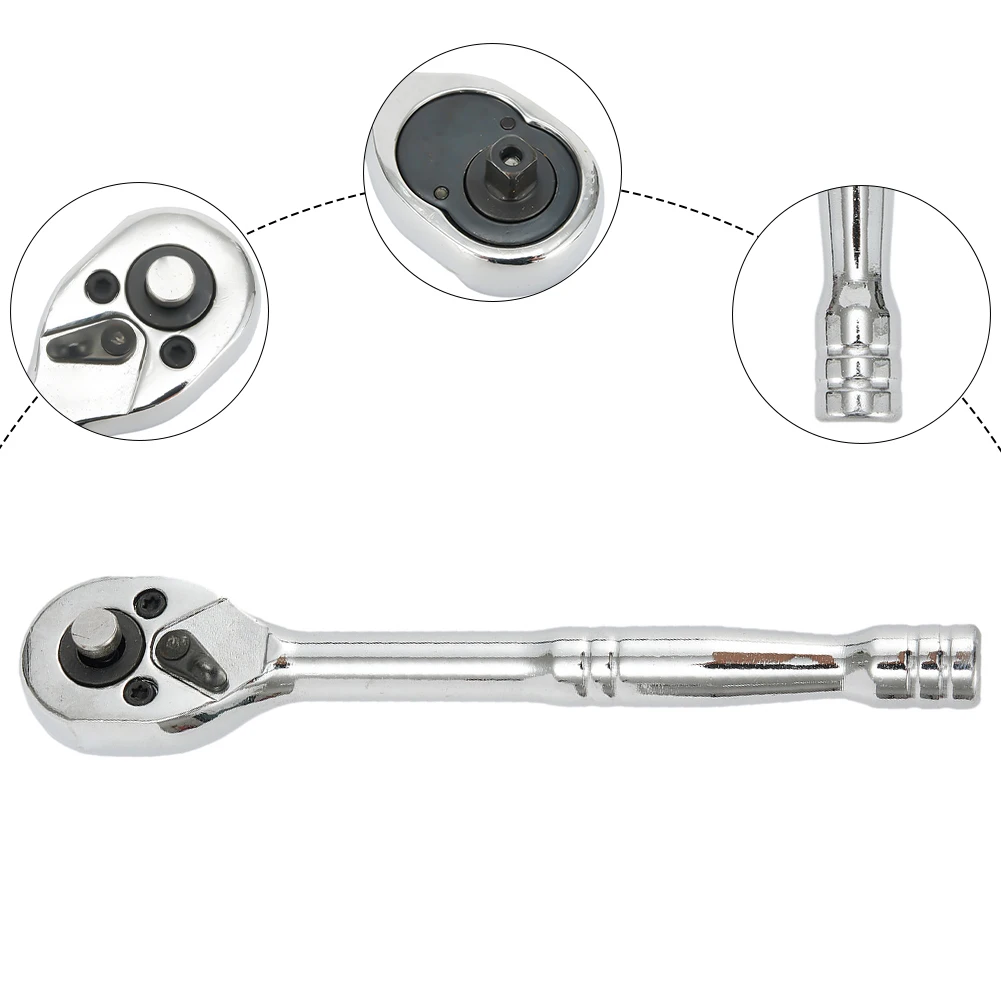Experience precision and durability with this set of high-torque ratchet wrenches designed for demanding metalwork tasks. Crafted from chrome vanadium steel with a sleek, polished mirror surface, these tools combine strength with a refined appearance. The gourd-shaped, slip-resistant handles ensure a comfortable grip, even during prolonged use, providing exceptional control and torque. Each wrench features a compact, black-colored ratchet head with a reversible mechanism, allowing you to switch directions swiftly. The inclusion of a ratchet-angle wheel makes working inside tight spaces easier, while the quick-turn lever maximizes efficiency for busy projects. With sizes of 1/4, 3/8, and 1/2 inch, this set is perfect for professional mechanics and serious DIY enthusiasts alike.