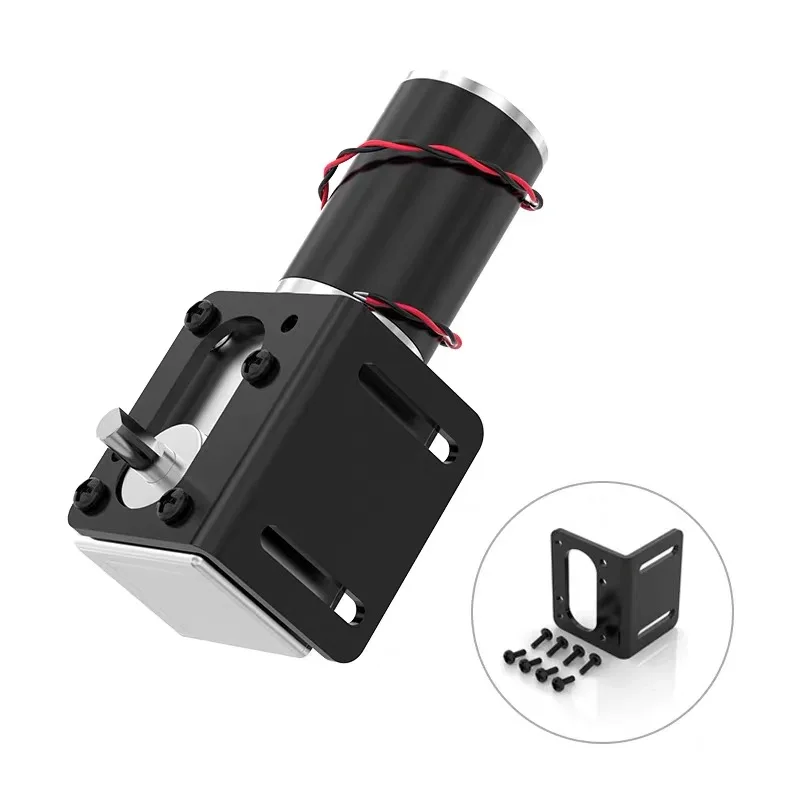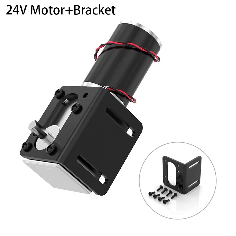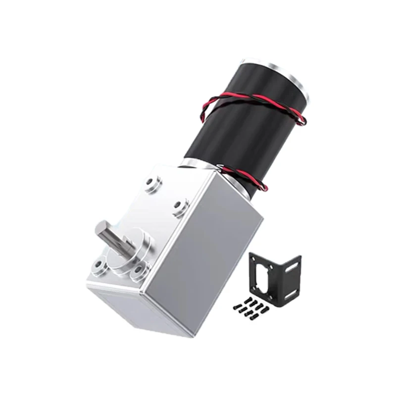 Experience the power and versatility of this innovative worm gear DC motor, designed to deliver high torque at low speeds. With options available in 12V and 24V, it’s perfect for applications that require precise control and reliable performance. Its sleek cylindrical design, featuring a smooth metallic finish and compact size, blends industrial robustness with modern style. The self-locking function ensures stability when power is off, while the forward and reverse capabilities add flexibility in operation. Whether you need it for robotics, automation, or custom machinery, this motor provides the technical features and durability needed for demanding tasks. Easy to install with compatible brackets, it’s a reliable choice for your engineering projects.