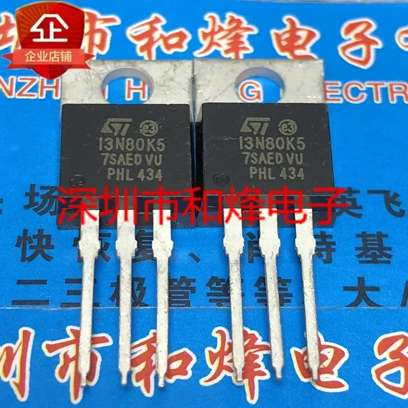 Experience reliable power switching with this new and original MOSFET transistor in a TO-220 through-hole package, capable of handling up to 800V and conducting 12A continuously. Designed for high-voltage, high-current applications, it features a sleek black plastic body with white printed specifications for clear readability, complemented by silver-colored leads for secure connections. The metal mounting tab with a central hole ensures easy heat dissipation and secure installation. Fully tested and inspected before delivery, this professional-grade component is ideal for industrial and electronic projects requiring durable, high-performance power regulation.