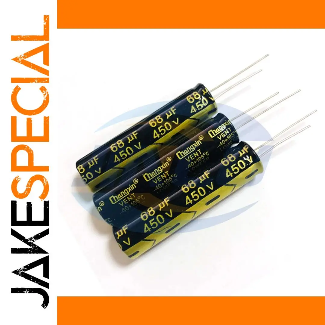 - Rated at 450V with capacitance options of 47UF, 68UF, 82UF, or 100UF, suitable for high-voltage applications with stability and reliability.