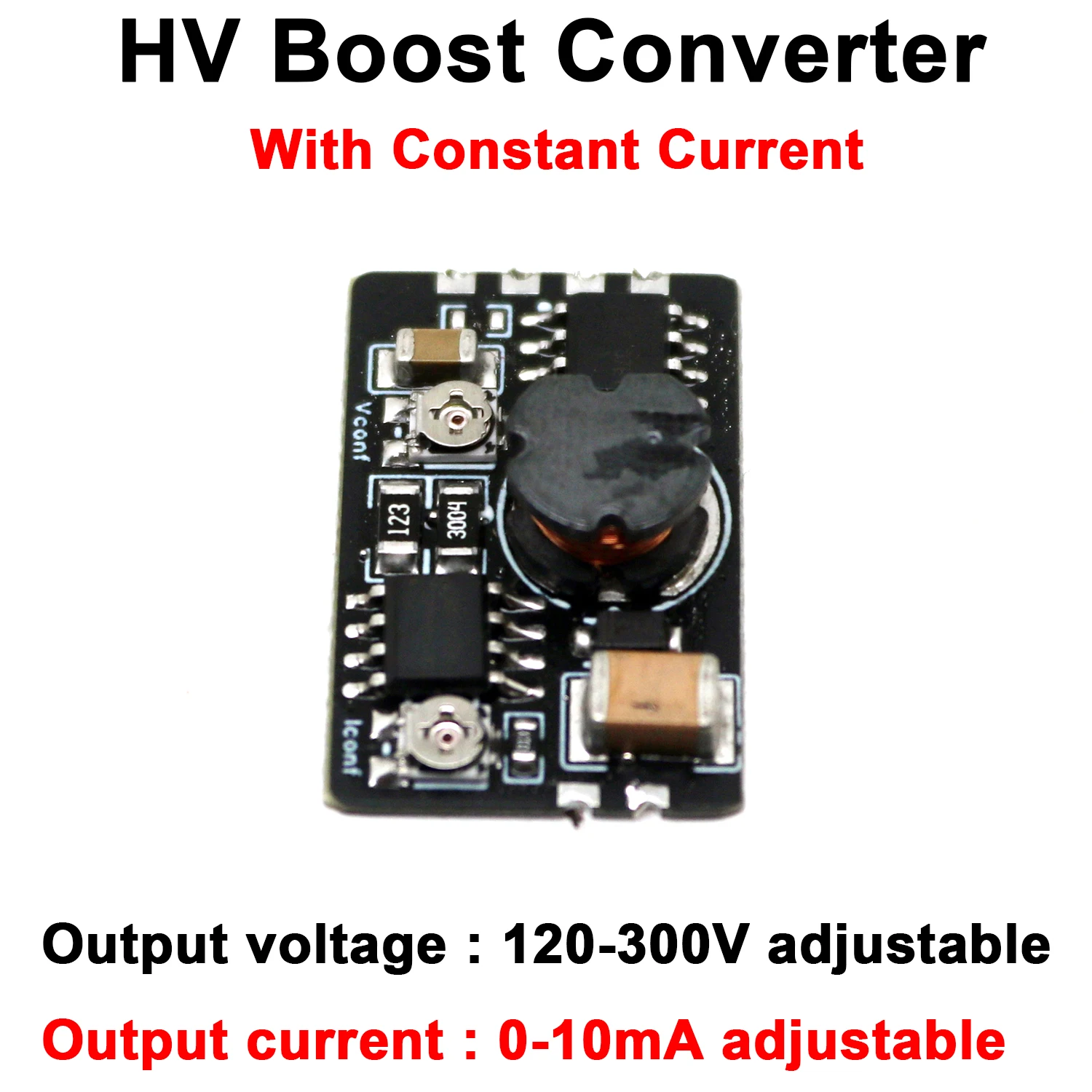 - Provides a stable, adjustable constant current output from 0 to 10mA, ideal for low-current high-voltage applications requiring precise control.