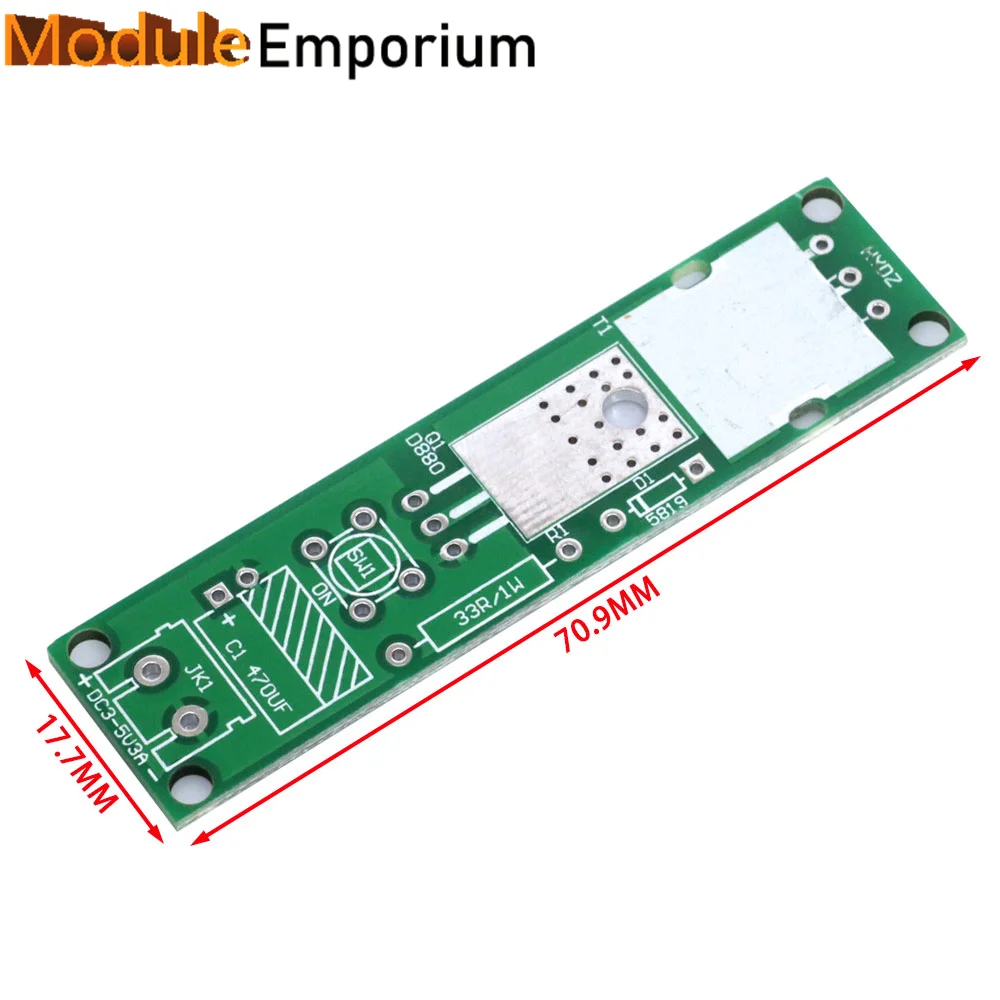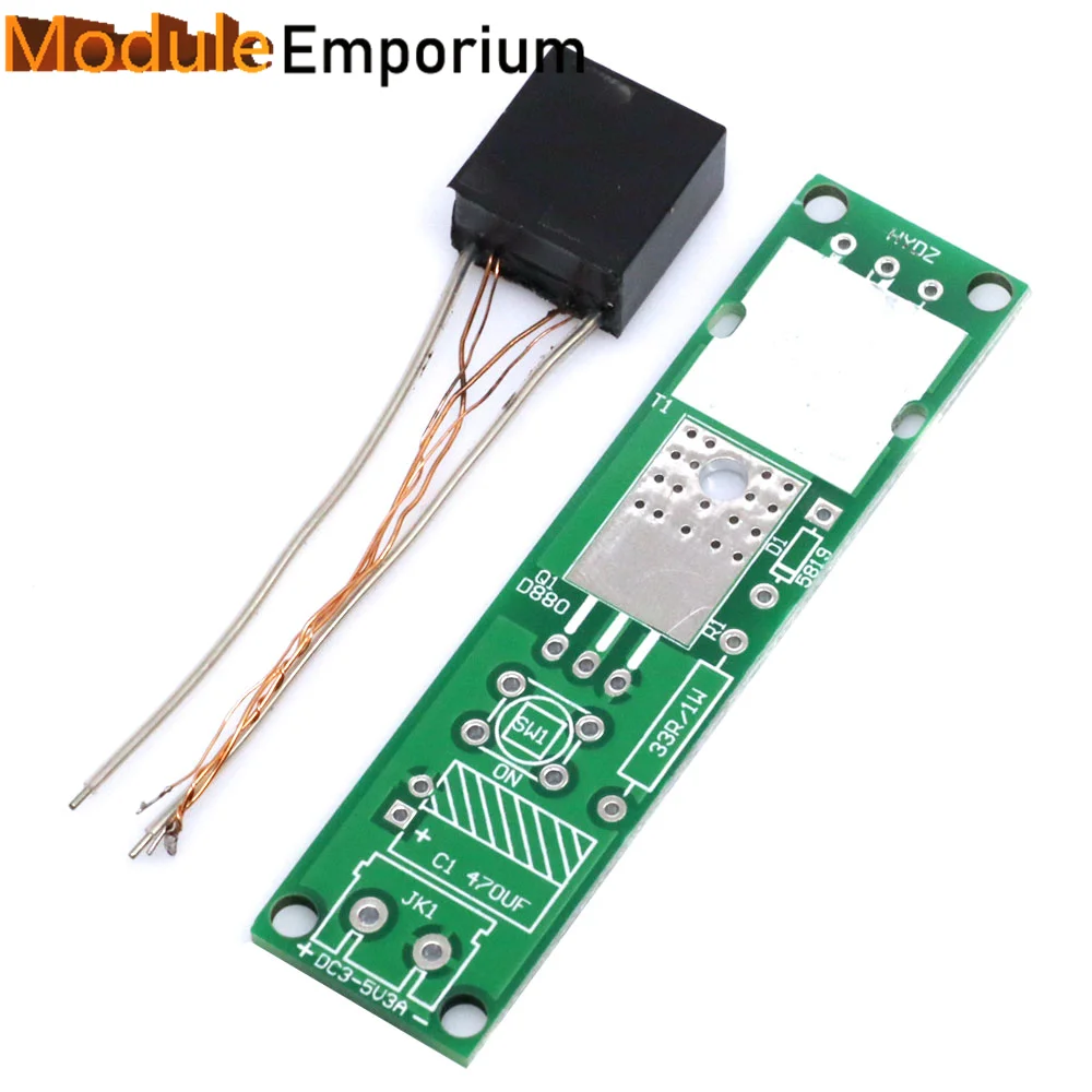 Experience the thrill of high-voltage experimentation with this DIY high voltage generator kit, featuring a compact 15KV booster coil circuit housed in a green rectangular circuit board measuring approximately 27x16x21mm. Operable from DC 3.7V to 4.2V (up to 12V with modifiable resistor), it delivers an output voltage of approximately 15KV at a maximum current of 0.4A, capable of producing high-temperature purple arcs up to 0.5 cm long. Ideal for scientific experiments, ignition projects, and educational demonstrations, this kit offers a reliable, organized design with black, blue, red, and metallic components, providing a hands-on electronics experience fused with impressive visual effects.