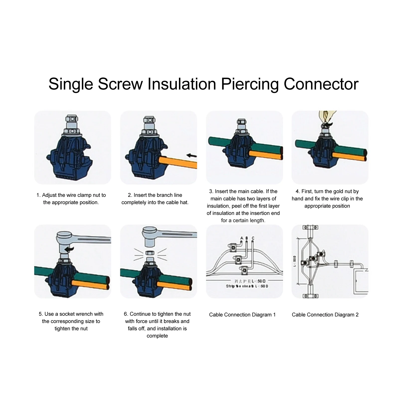 - Features copper piercing parts with a tin-plated surface, providing excellent electrical conductivity and resistance to oxidation, compatible with copper and aluminum wires.