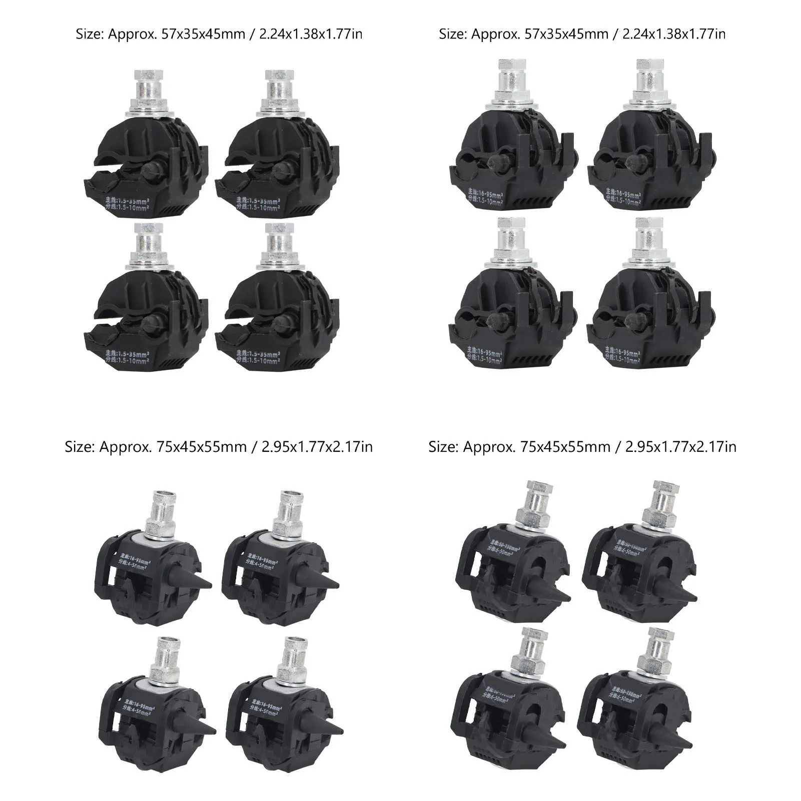 Imagine confidently installing or upgrading your electrical wiring without the hassle of stripping insulation. This this insulation piercing connector set offers a reliable, safe, and efficient solution for high-voltage applications up to 1KV. Crafted with durable flame-retardant PVC shells, these connectors provide a sealed, heat-resistant interior filled with insulating thermal oil to ensure optimal insulation and conductivity. Their sleek black design with white markings guarantees ease of identification and precise installation. Whether managing overhead power lines or street lighting, these connectors allow you to branch cables seamlessly on live circuits, reducing downtime and safety risks. Trust in their rugged build and high-performance features to streamline your electrical projects with confidence.